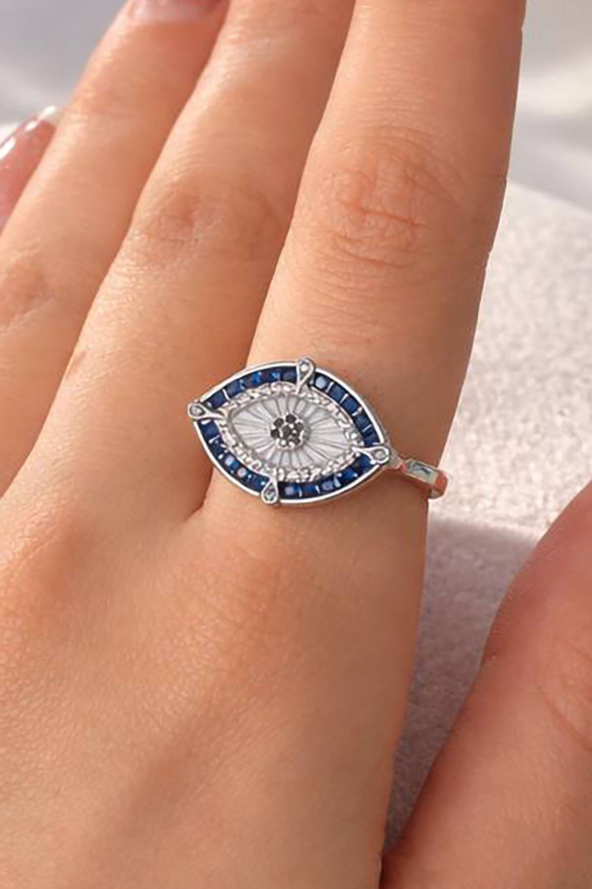 Gümüş Renk Göz Figürlü Ayarlanabilir Yüzük