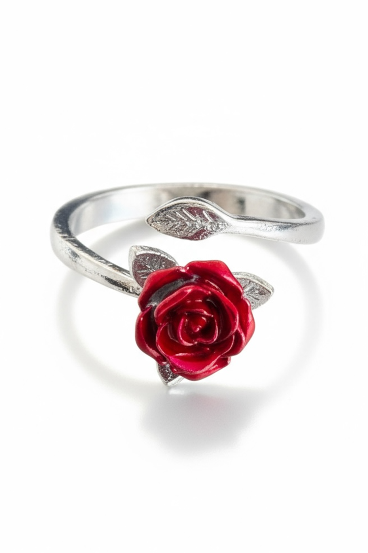 Gümüş Renk Gül Figürlü Ayarlanabilir Yüzük