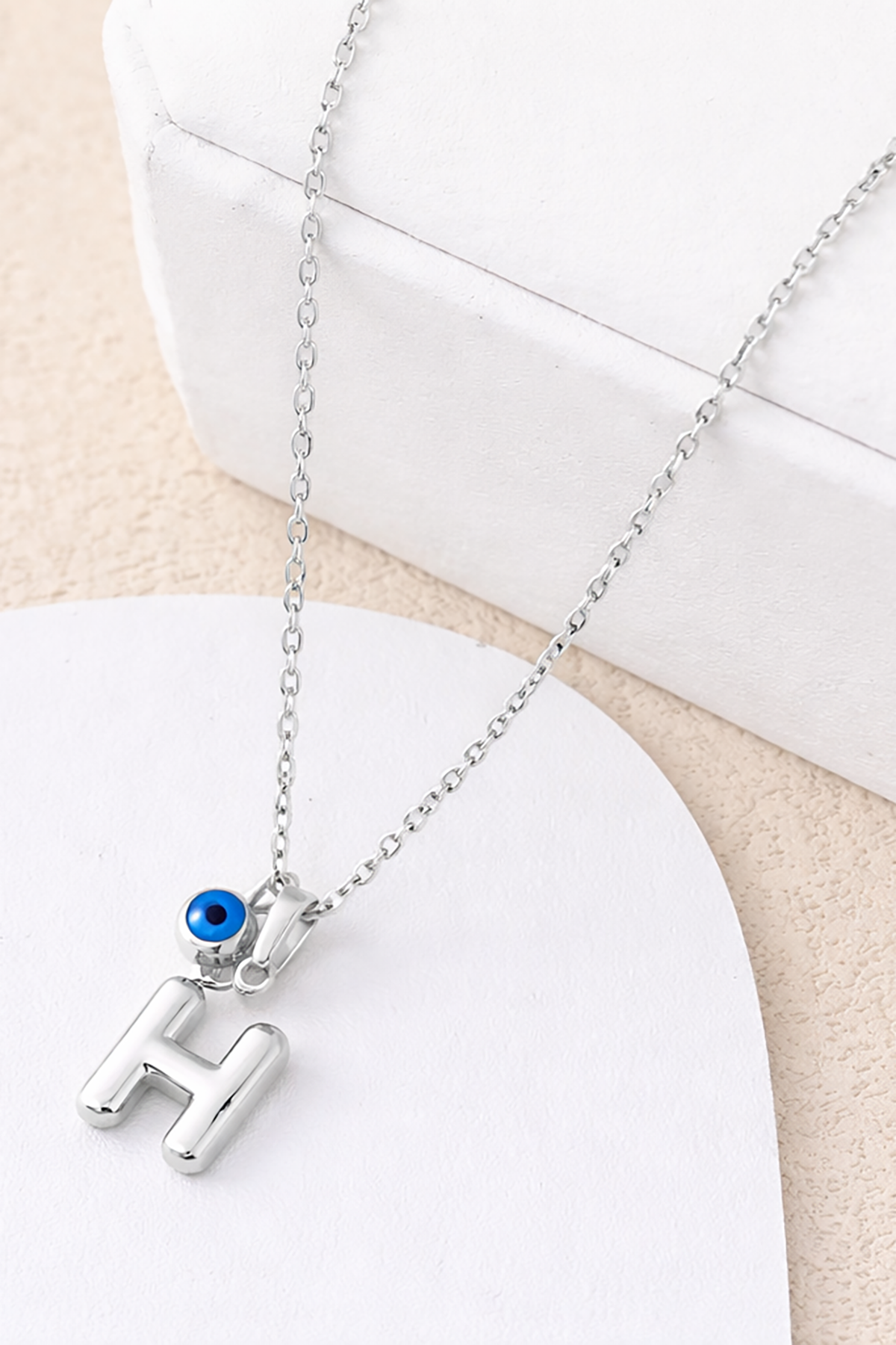 Gümüş Renk H Harf Çelik Kolye