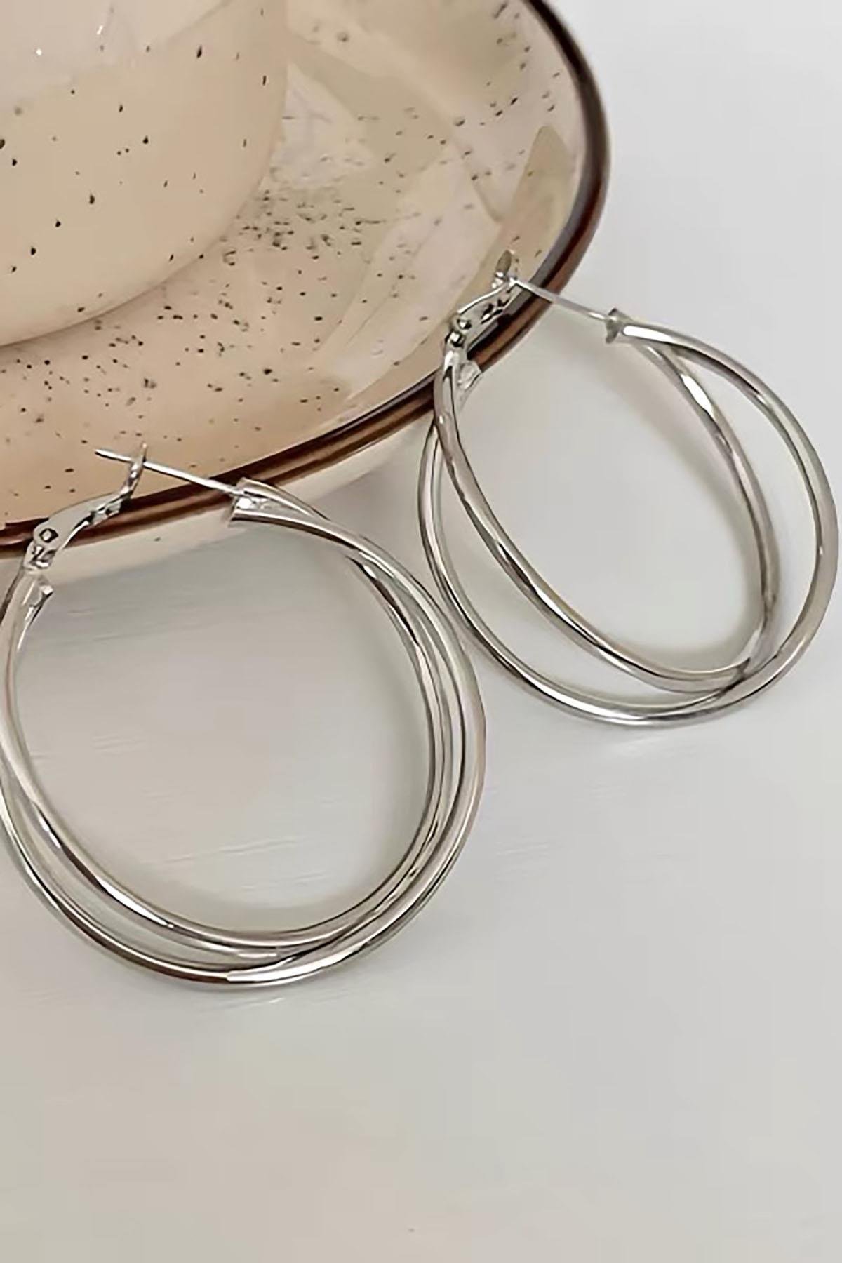 Gümüş Renk Halka Küpe (Çift)