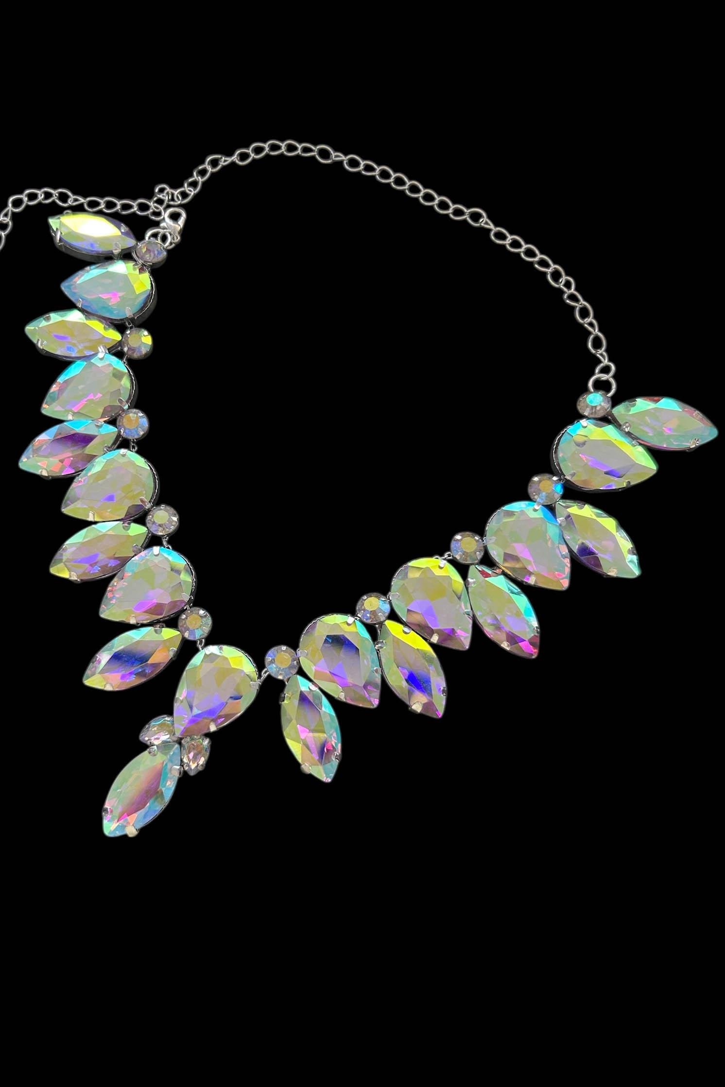 Gümüş Renk Hologram Taş Detaylı Tasarım Abiye Kolye