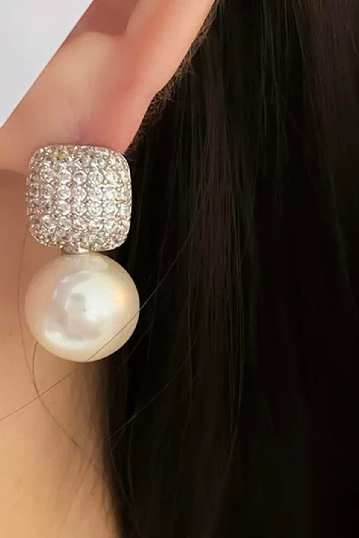 Gümüş Renk İnci Detaylı Küpe (Çift)