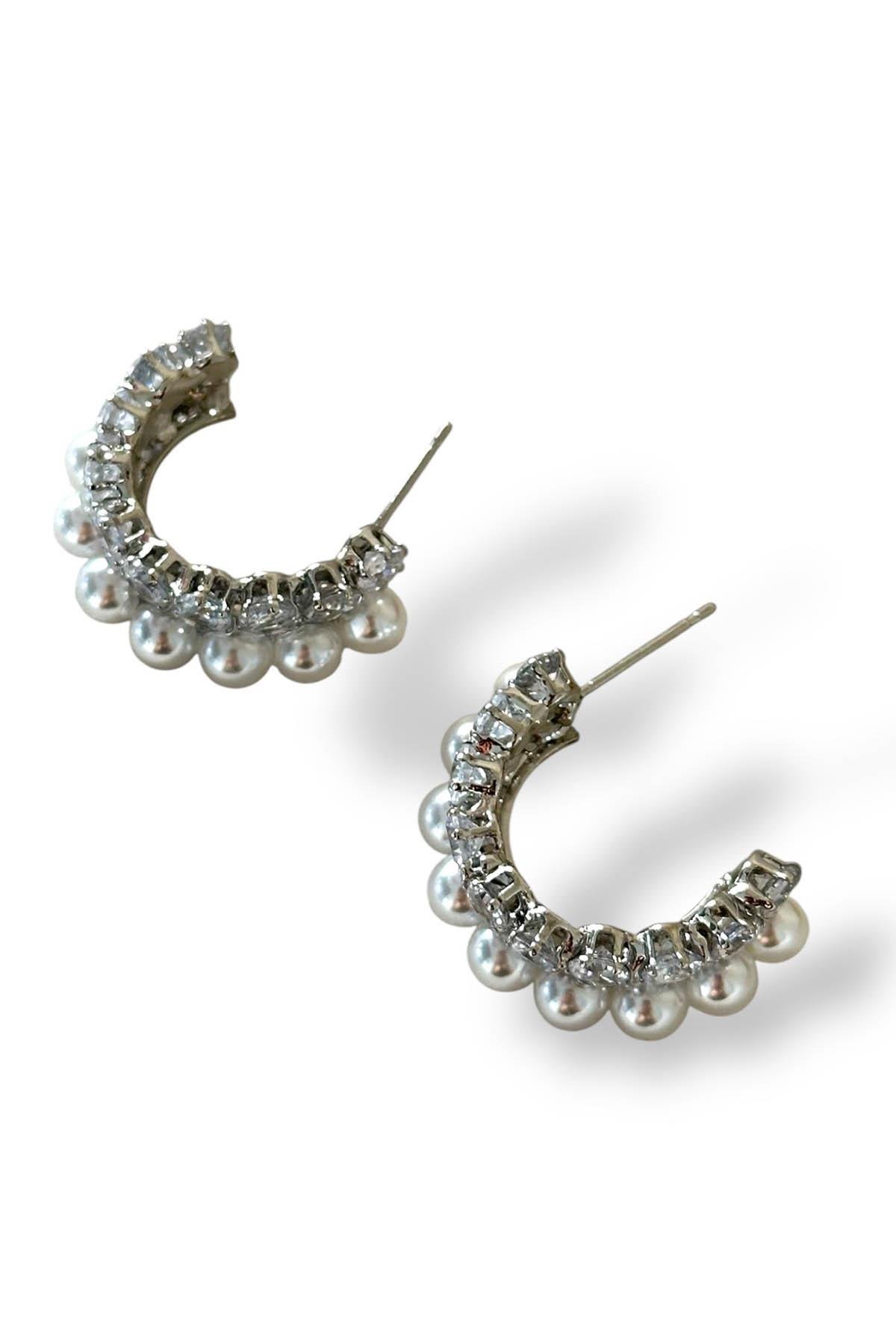 Gümüş Renk İnci Detaylı Küpe (Çift)