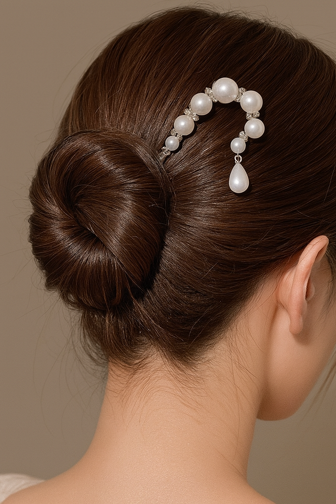 Gümüş Renk İnci Detaylı Topuz Toka