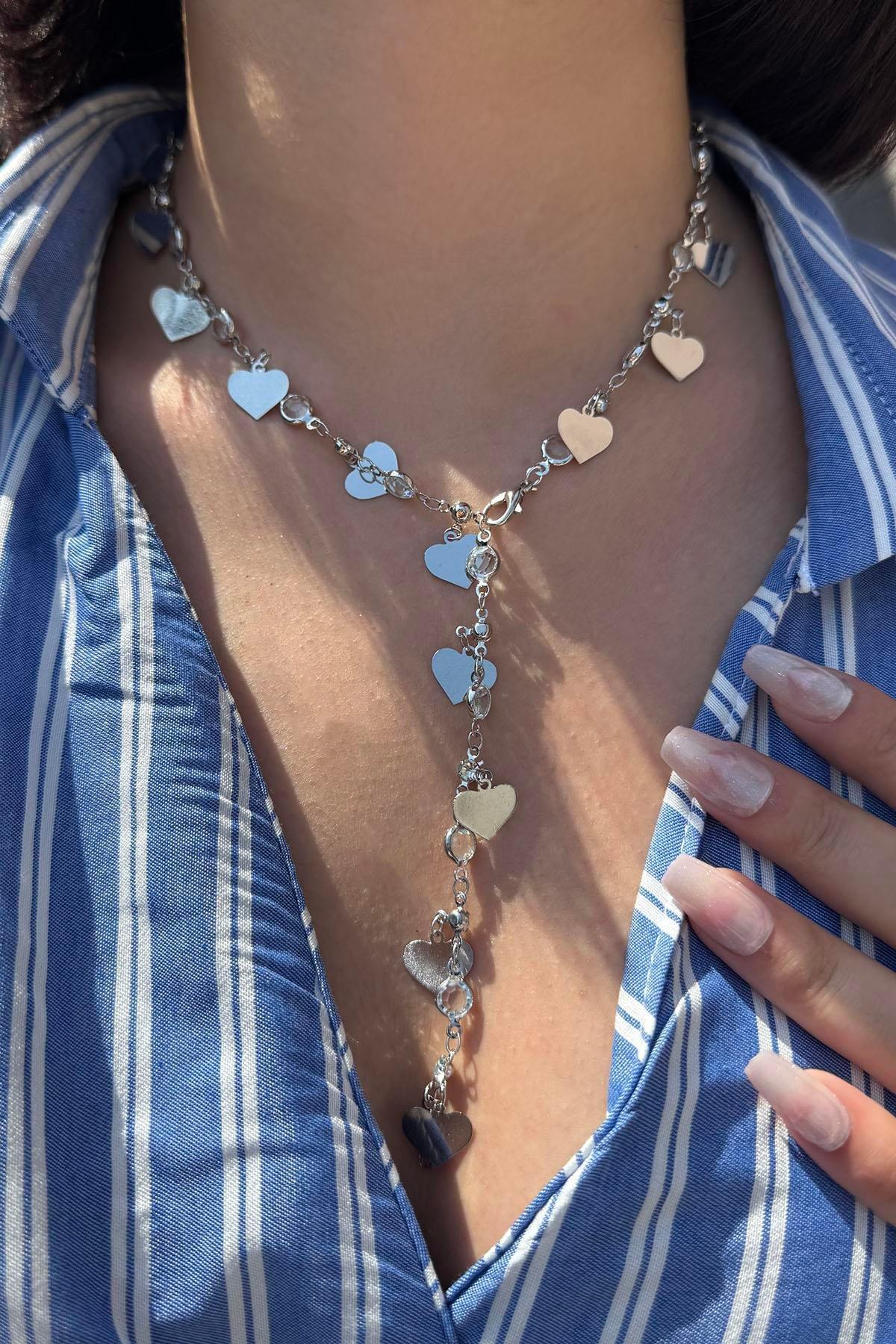 Gümüş Renk Kalp Figürlü Çelik Y Kolye