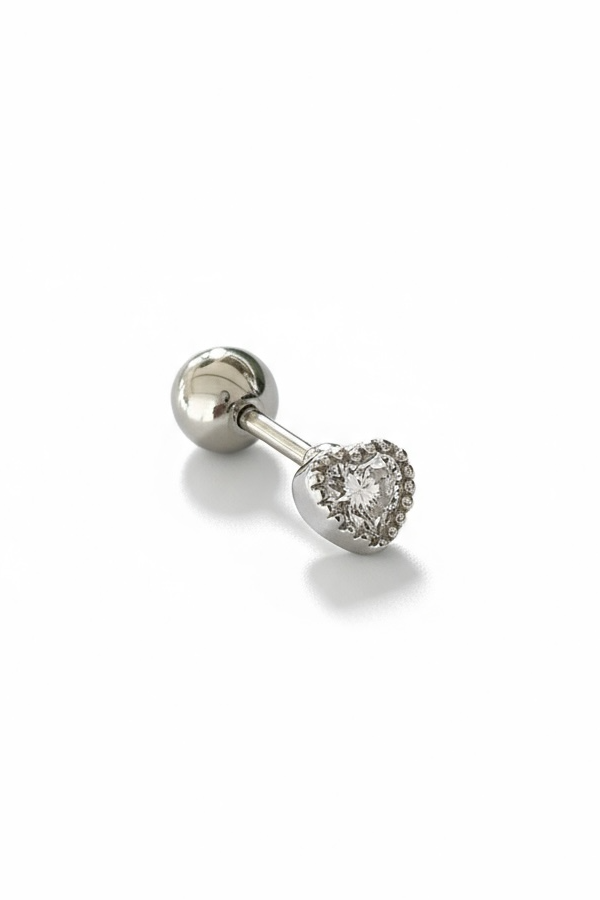 Gümüş Renk Kalp Figürlü Cerrahi Çelik Tragus/Kıkırdak Küpe/Piercing (Tek)