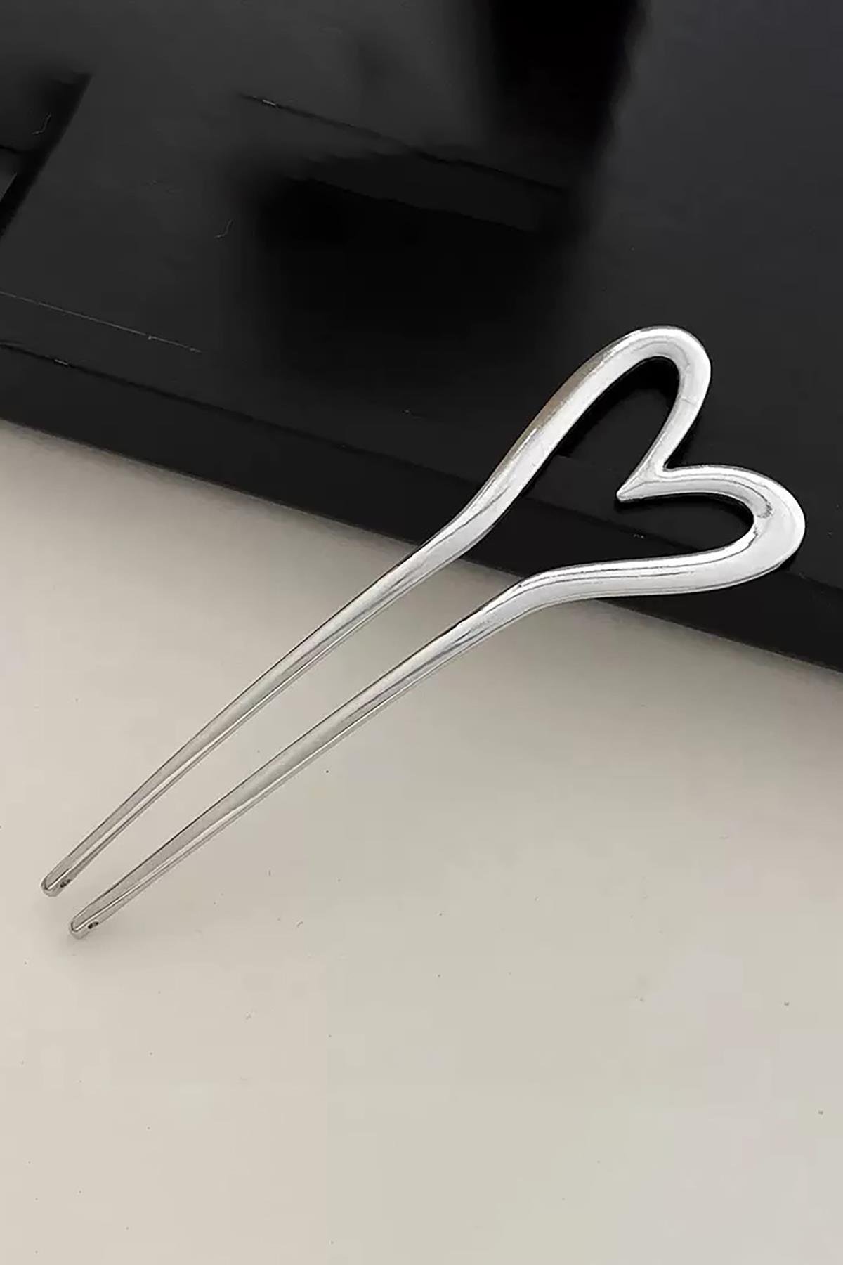 Gümüş Renk Kalp Figürlü Metal Topuz Tokası