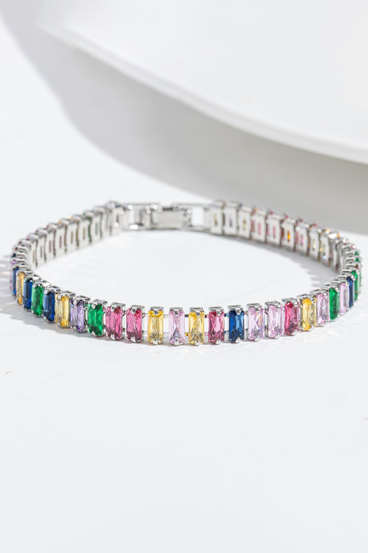 Gümüş Renk Karışık Taş Detaylı Su Yolu Bileklik