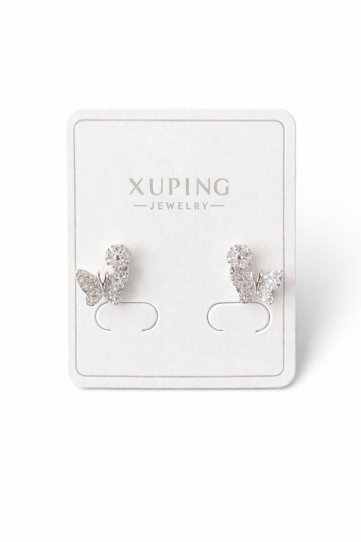 Gümüş Renk Kelebek Figürlü Taş Detaylı Çelik Xupıng VİP Küpe