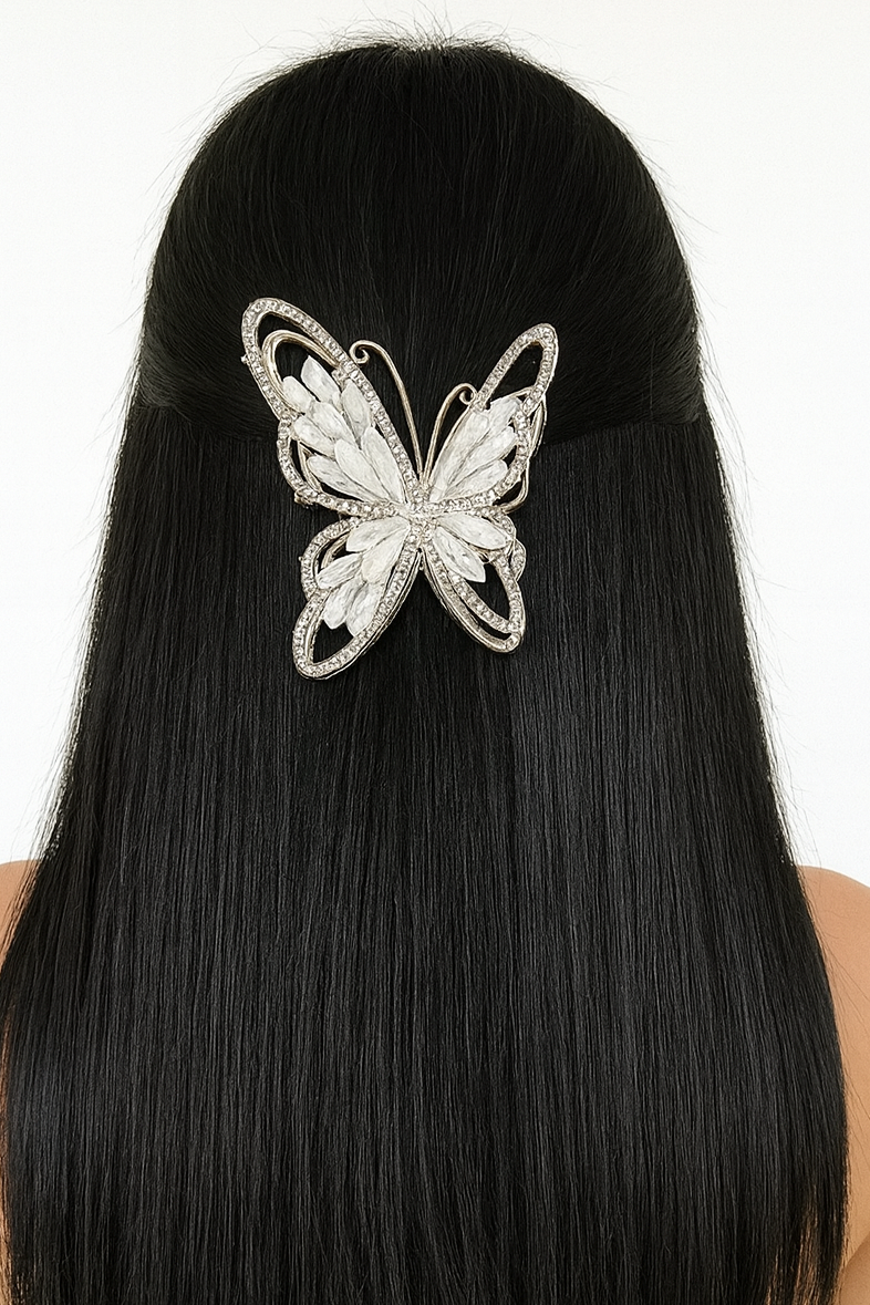 Gümüş Renk Kelebek Figürlü Taşlı Mandal Toka