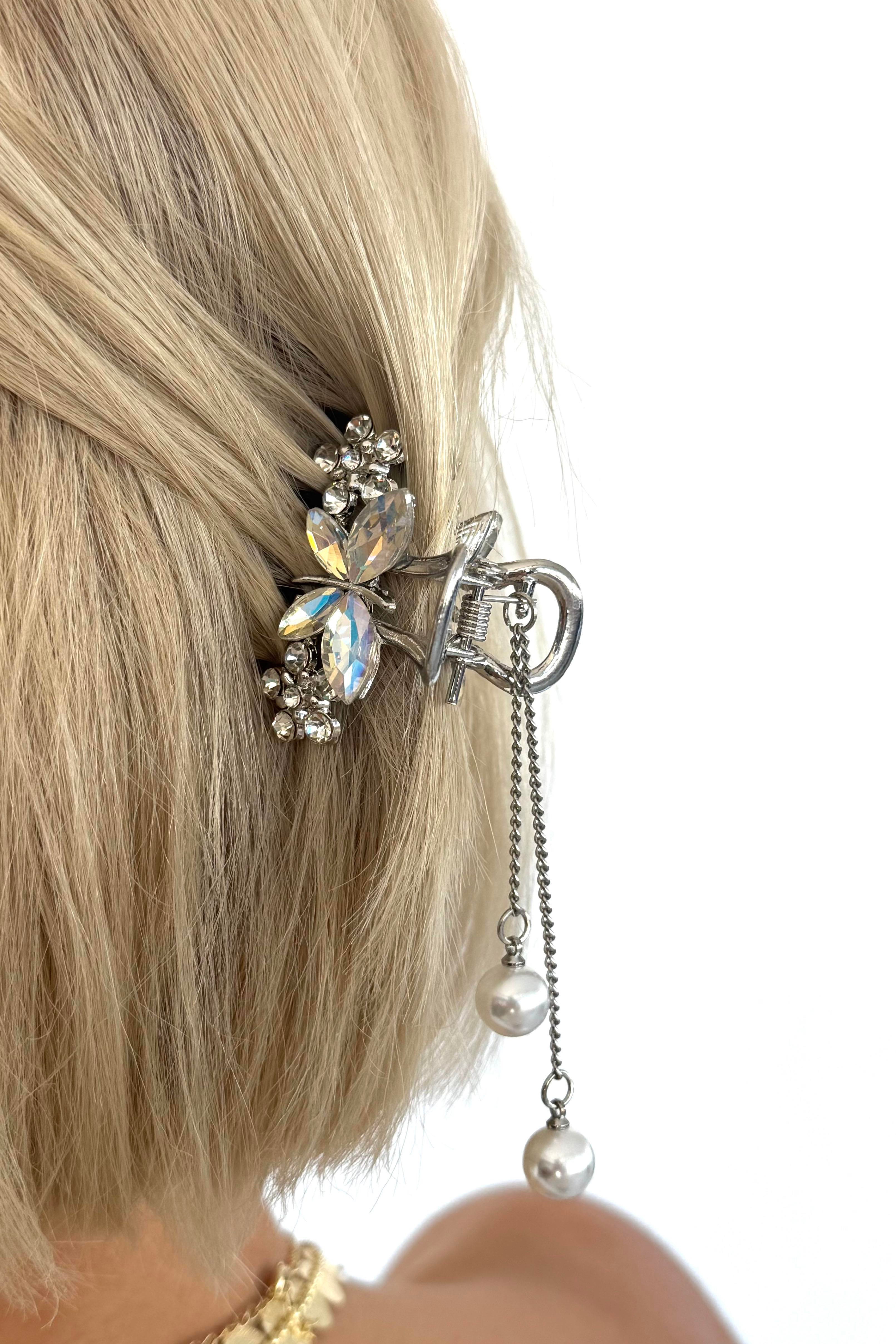 Gümüş Renk Kelebek Figürlü Taşlı Mini Mandal Toka