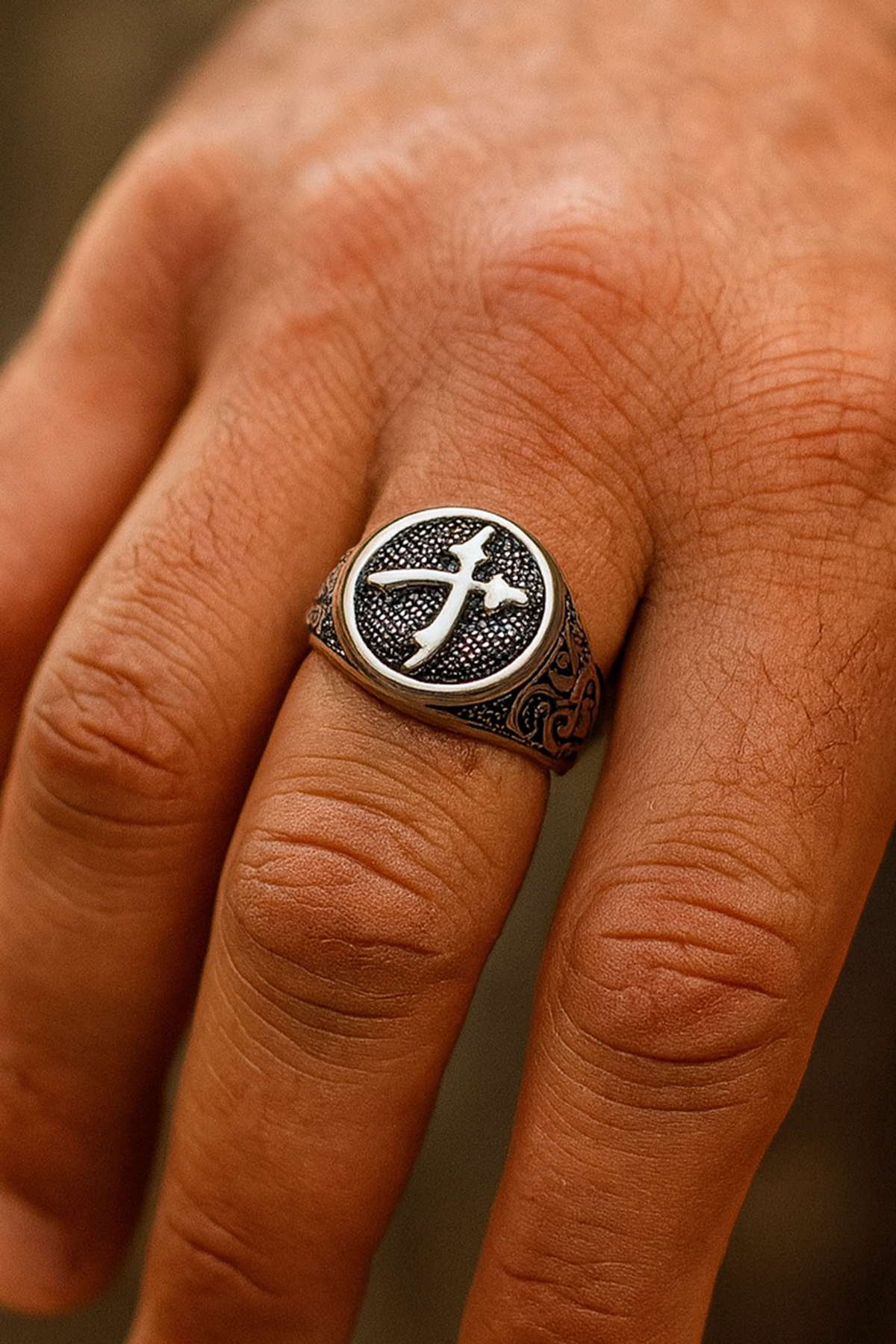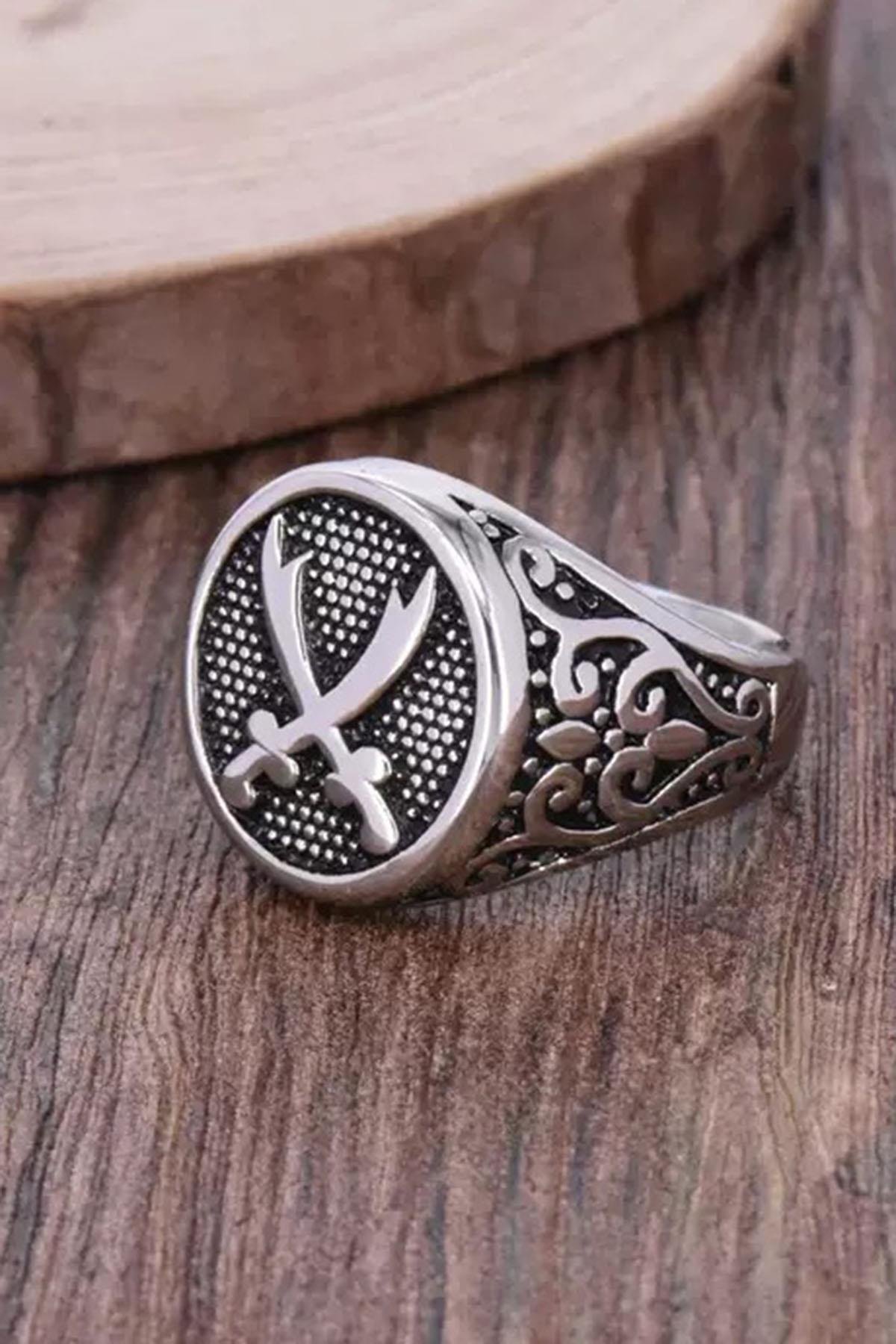 Gümüş Renk Kılıç Figürlü Ayarlanabilir Çelik Erkek Yüzük