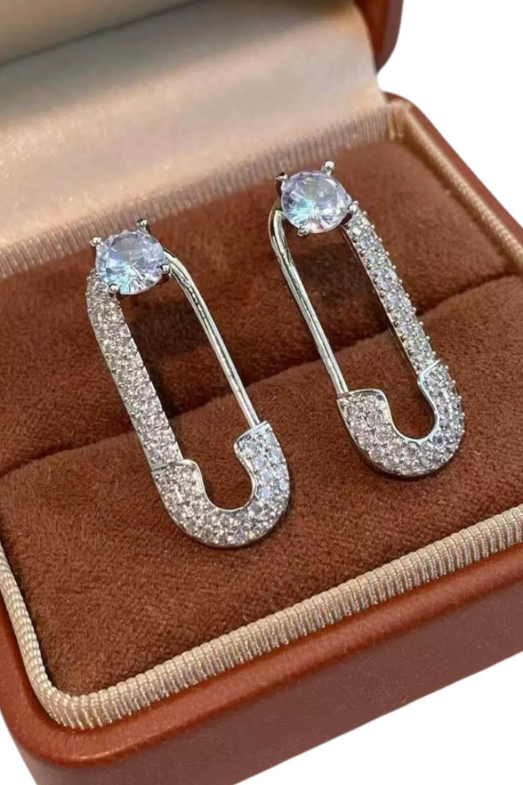 Gümüş Renk Kilit Figürlü Taş Detaylı Küpe (Çift)