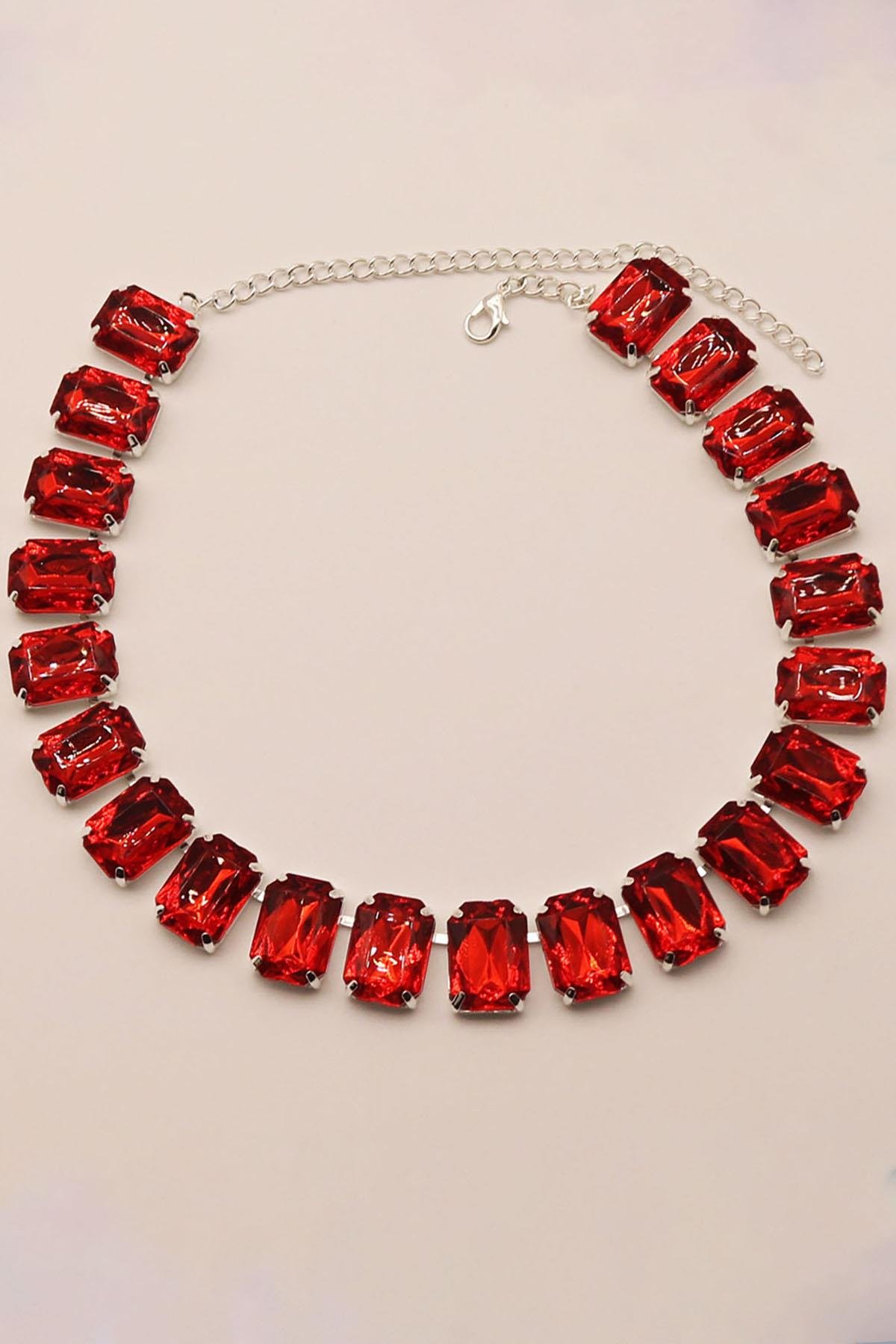 Gümüş Renk Kırmızı Taş Detaylı Tasarım Abiye Kolye