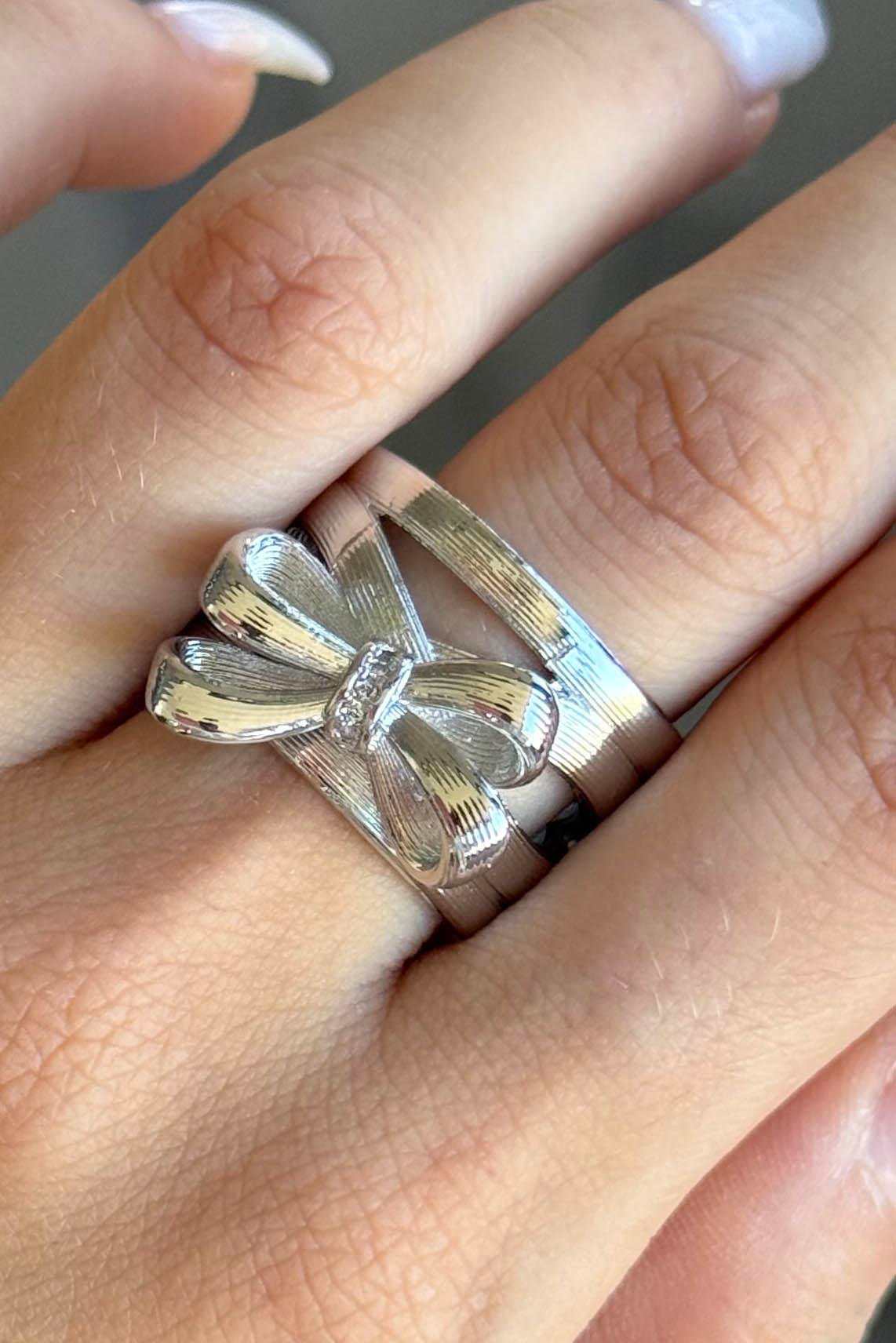 Gümüş Renk Kurdele Figürlü Ayarlanabilir Çelik Yüzük