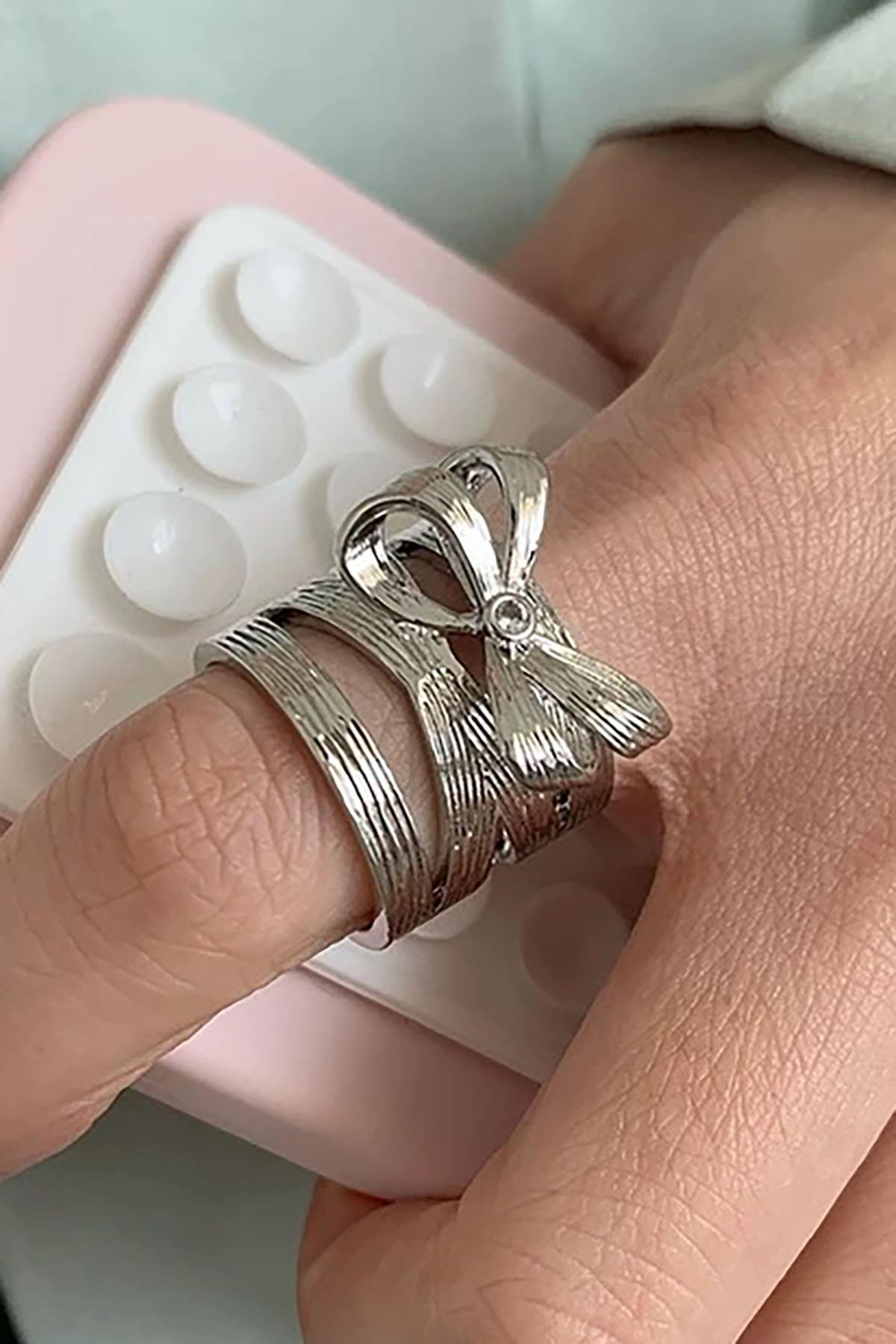 Gümüş Renk Kurdele Figürlü Ayarlanabilir Çelik Yüzük