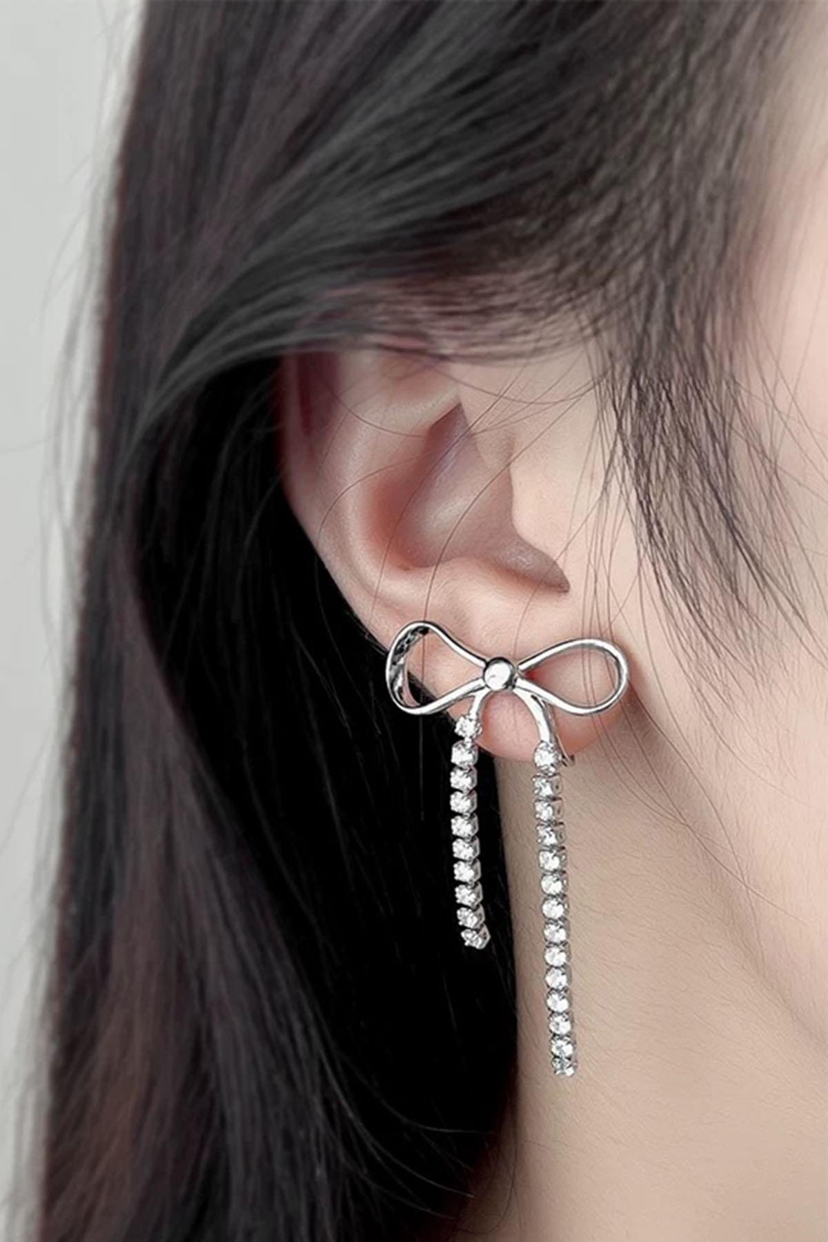 Gümüş Renk Kurdele Figürlü Taş Detaylı Küpe (Çift)