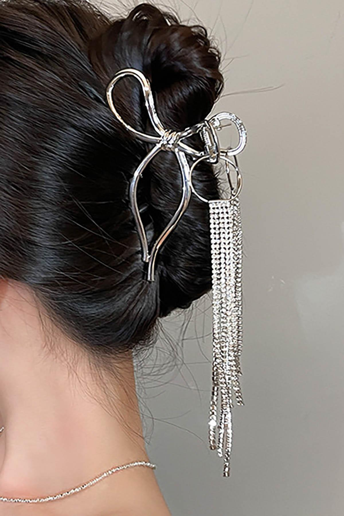 Gümüş Renk Kurdele Figürlü Taş Detaylı Metal Mandal Toka