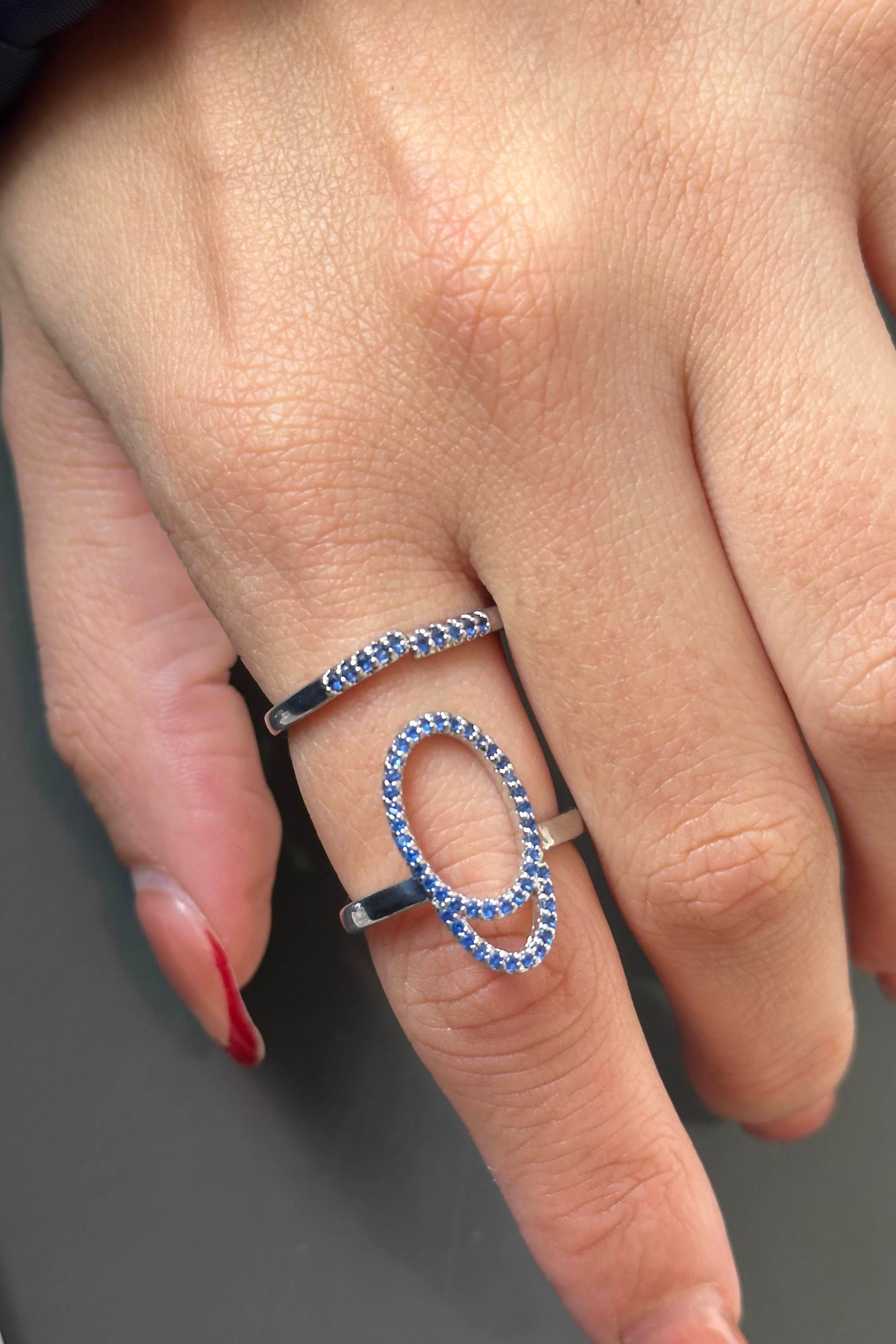 Gümüş Renk Lacivert Taş Detaylı Ayarlanabilir Çelik Yüzük
