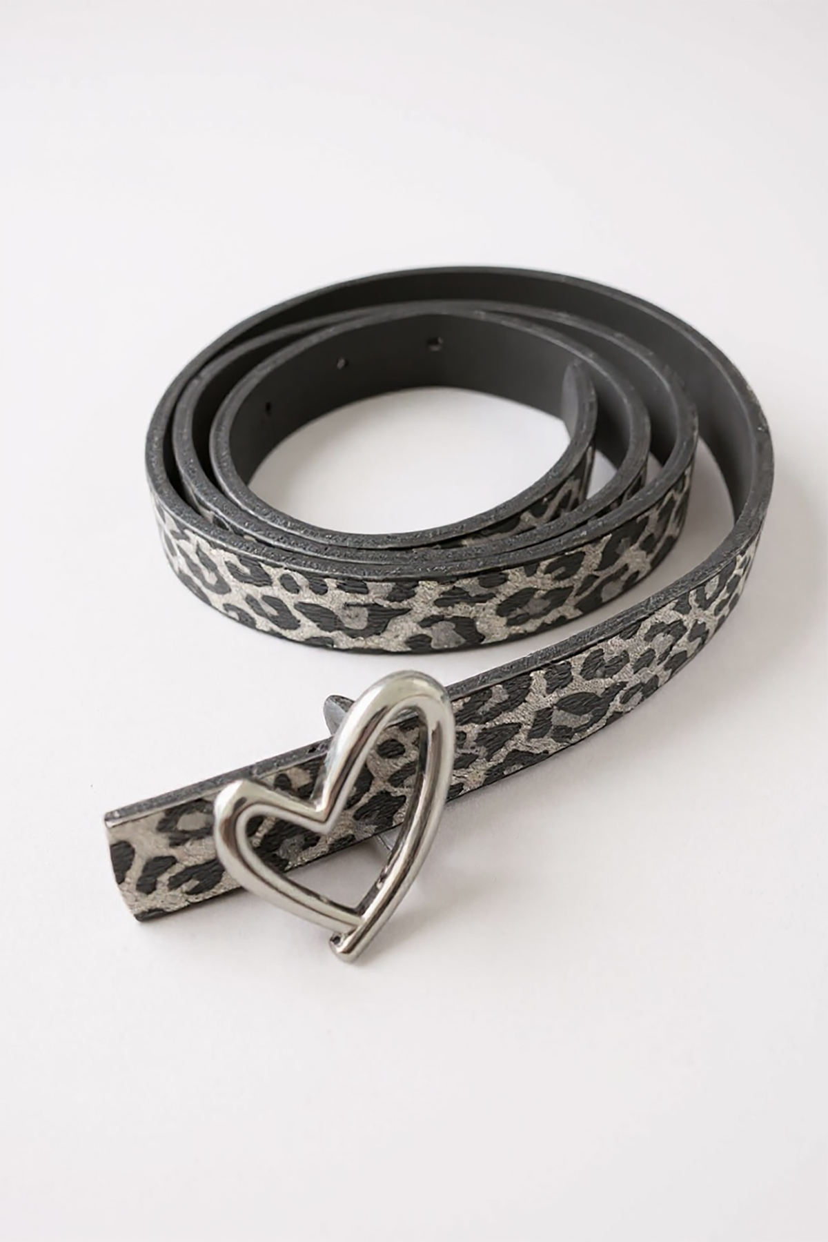 Gümüş Renk Leopar Desenli Kadın Deri Kemer