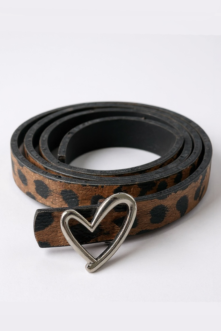 Gümüş Renk Leopar Desenli Kadın Deri Kemer