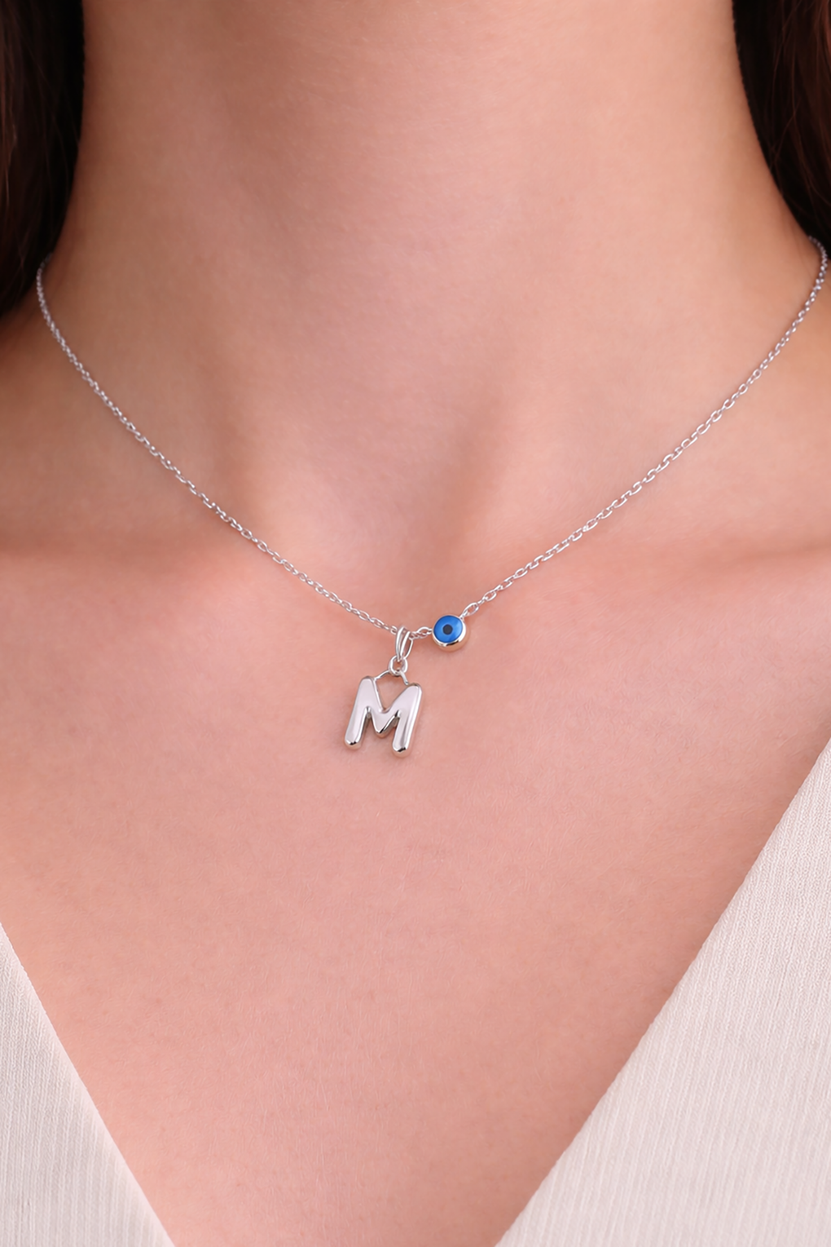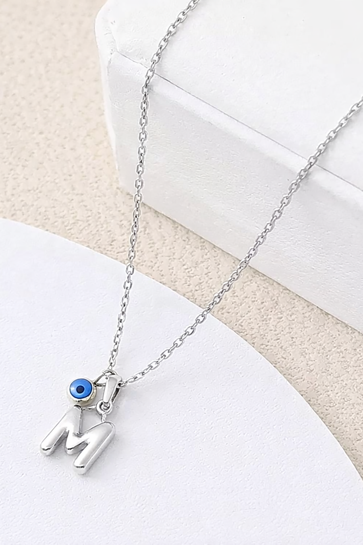 Gümüş Renk M Harf Çelik Kolye