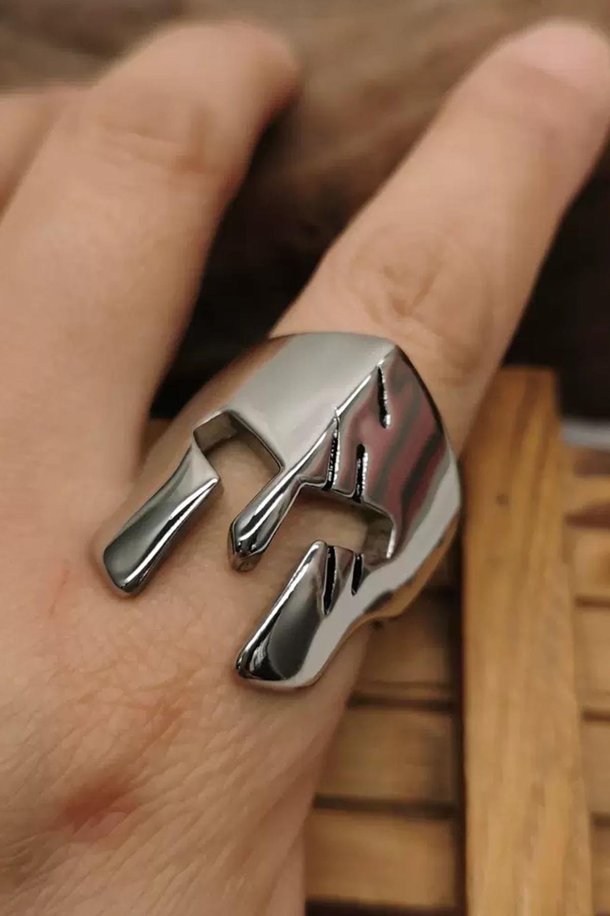 Gümüş Renk Maske Figürlü Ayarlanabilir Çelik Erkek Yüzük
