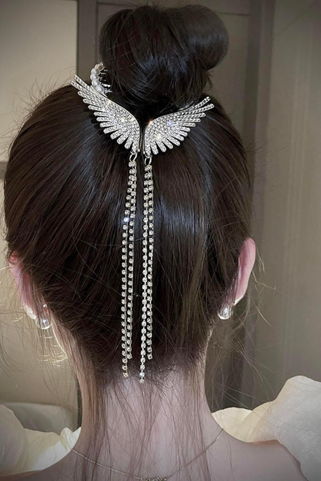 Gümüş Renk Melek Kanadı Figürlü İnci Ve Taş Detaylı Topuz Toka