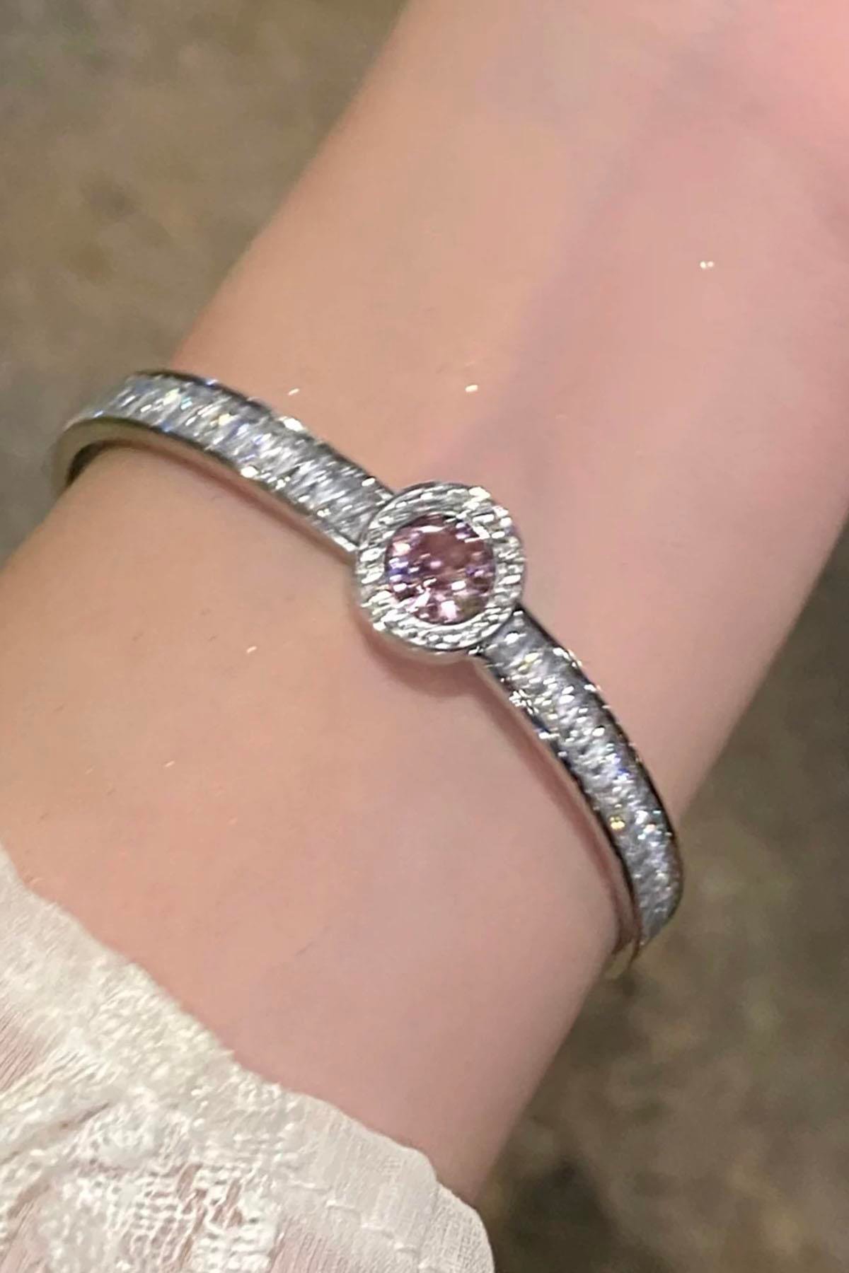 Gümüş Renk Pembe Taş Detaylı Çelik Kelepçe Bileklik