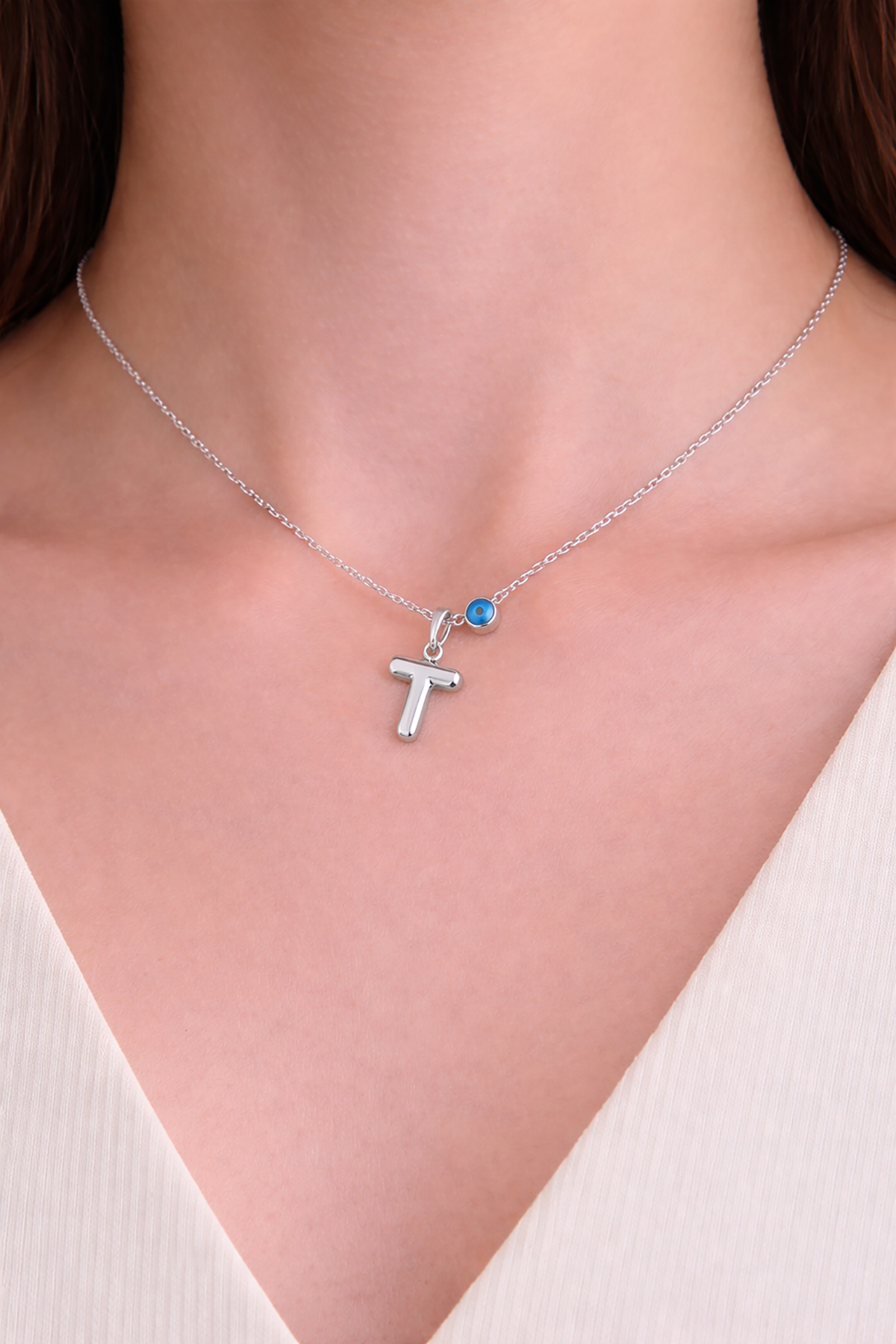 Gümüş Renk T Harf Çelik Kolye