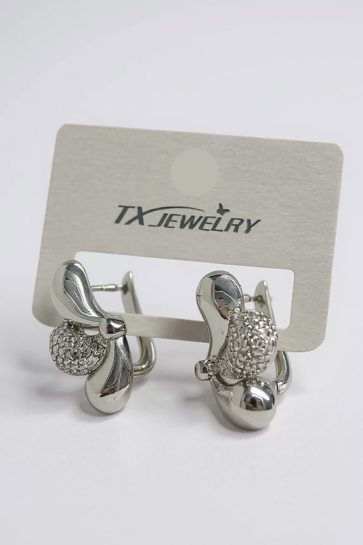 Gümüş Renk Taş Detaylı 14K Altın Kaplama TX Küpe (Çift)