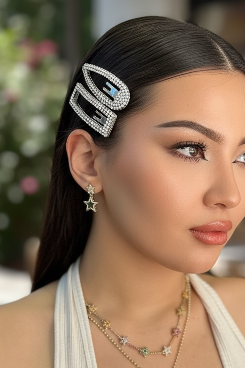 Gümüş Renk Taş Detaylı 2'li Yan Toka