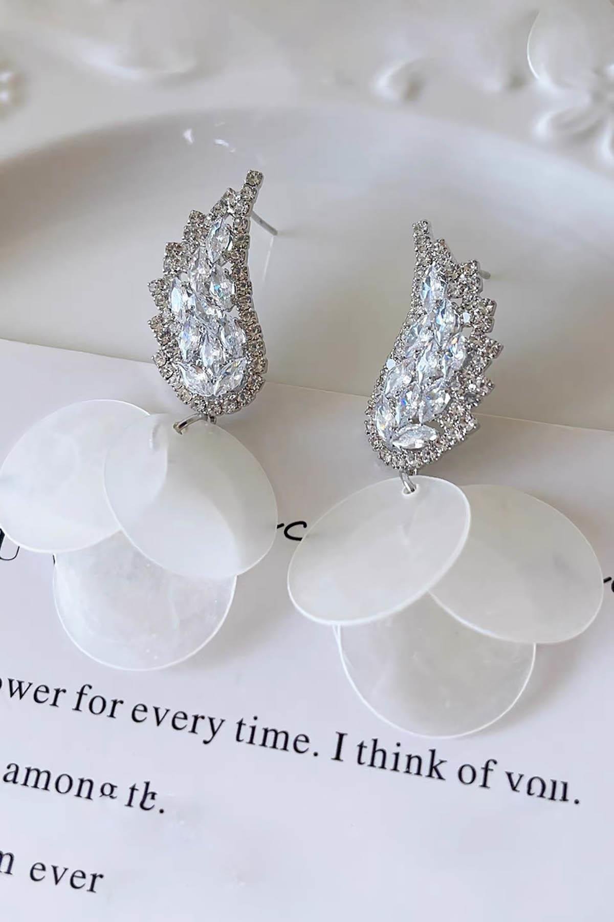 Gümüş Renk Taş Detaylı Abiye Küpe (Çift)