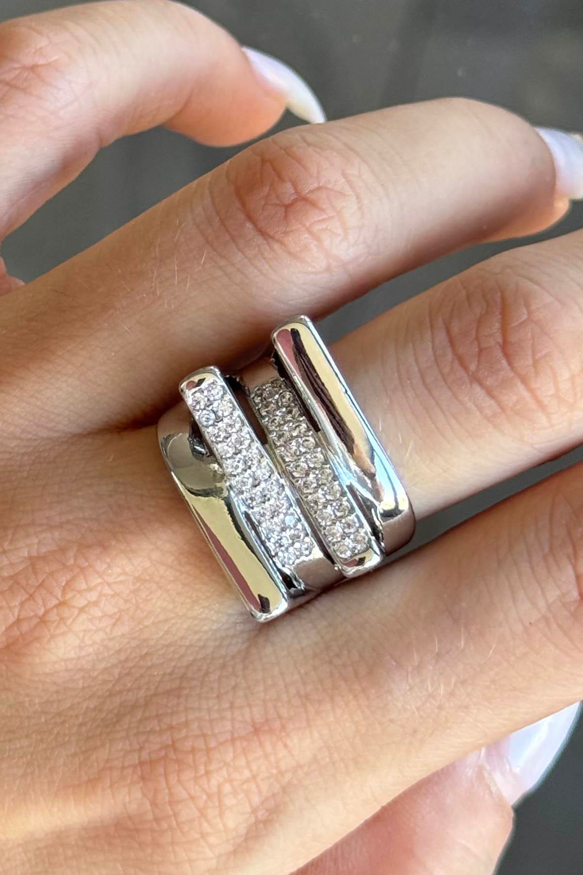 Gümüş Renk Taş Detaylı Ayarlanabilir Çelik Yüzük