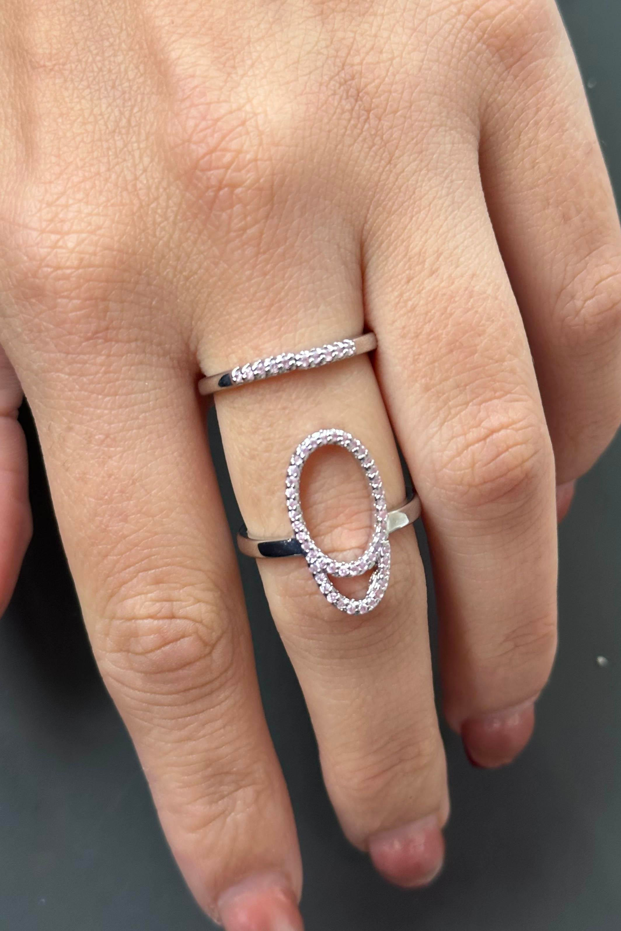 Gümüş Renk Taş Detaylı Ayarlanabilir Çelik Yüzük