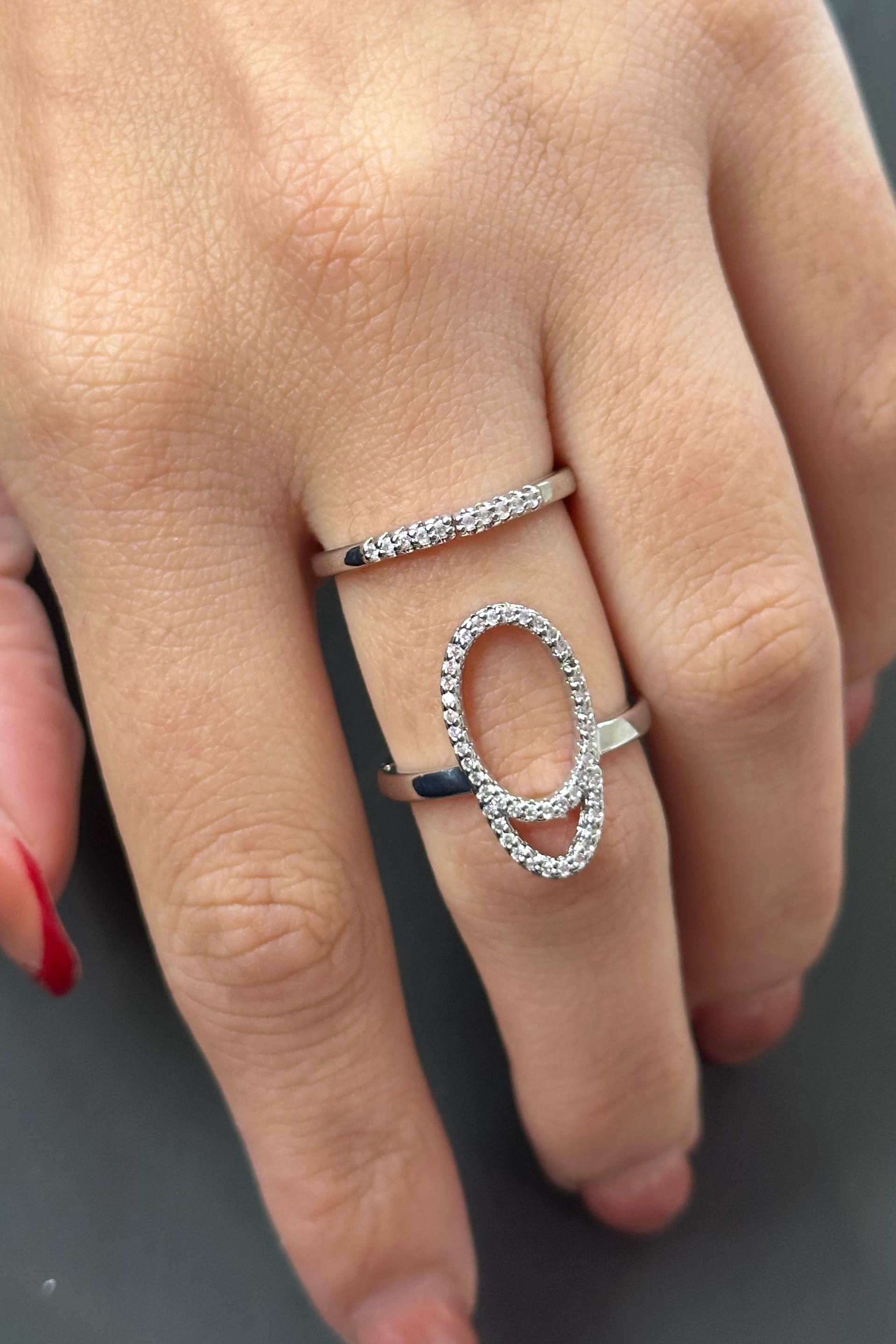 Gümüş Renk Taş Detaylı Ayarlanabilir Çelik Yüzük