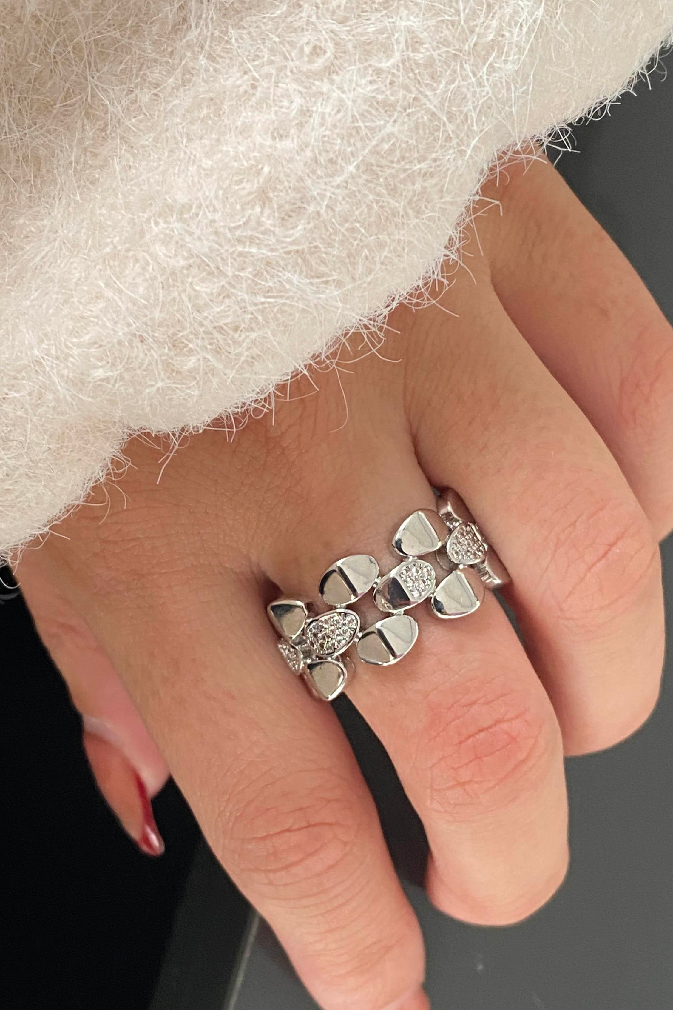 Gümüş Renk Taş Detaylı Ayarlanabilir Çelik Yüzük