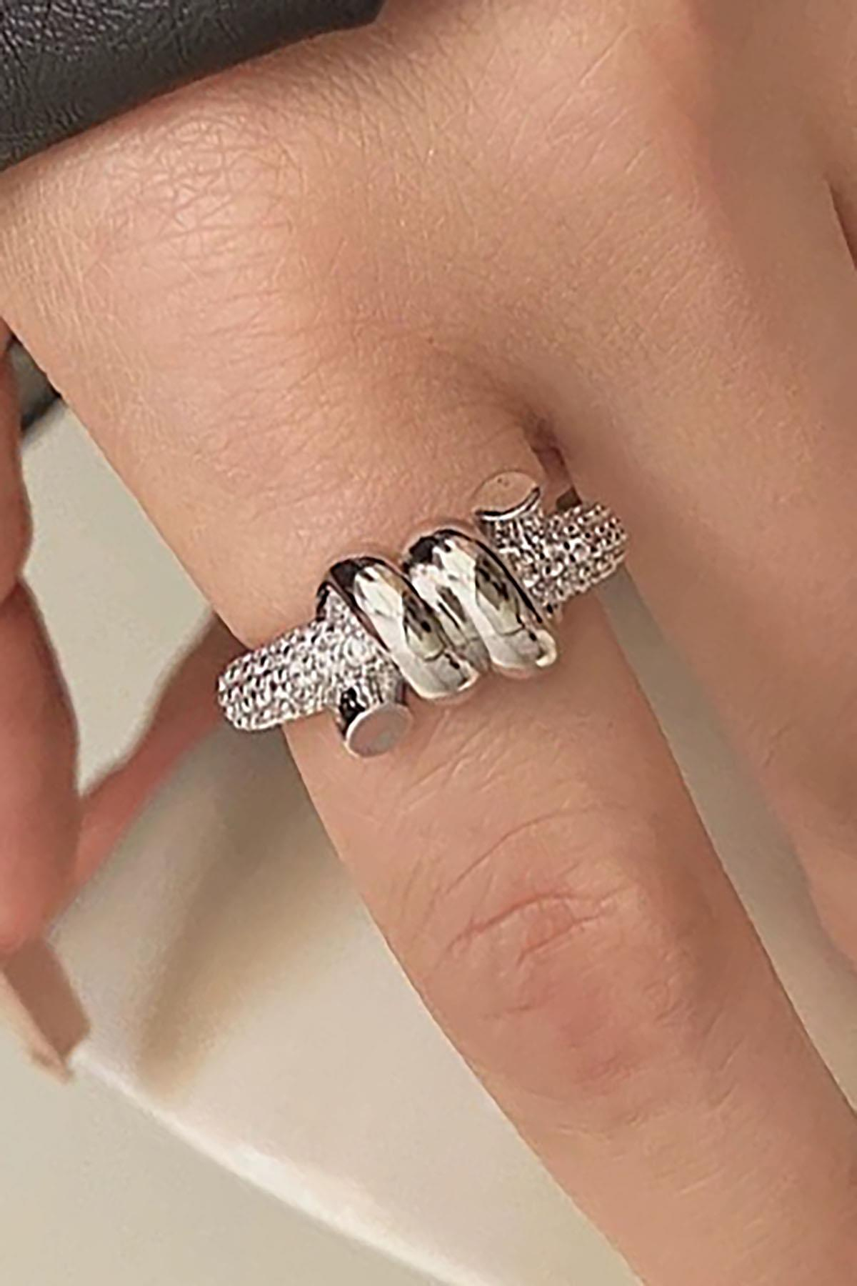 Gümüş Renk Taş Detaylı Ayarlanabilir Çelik Yüzük