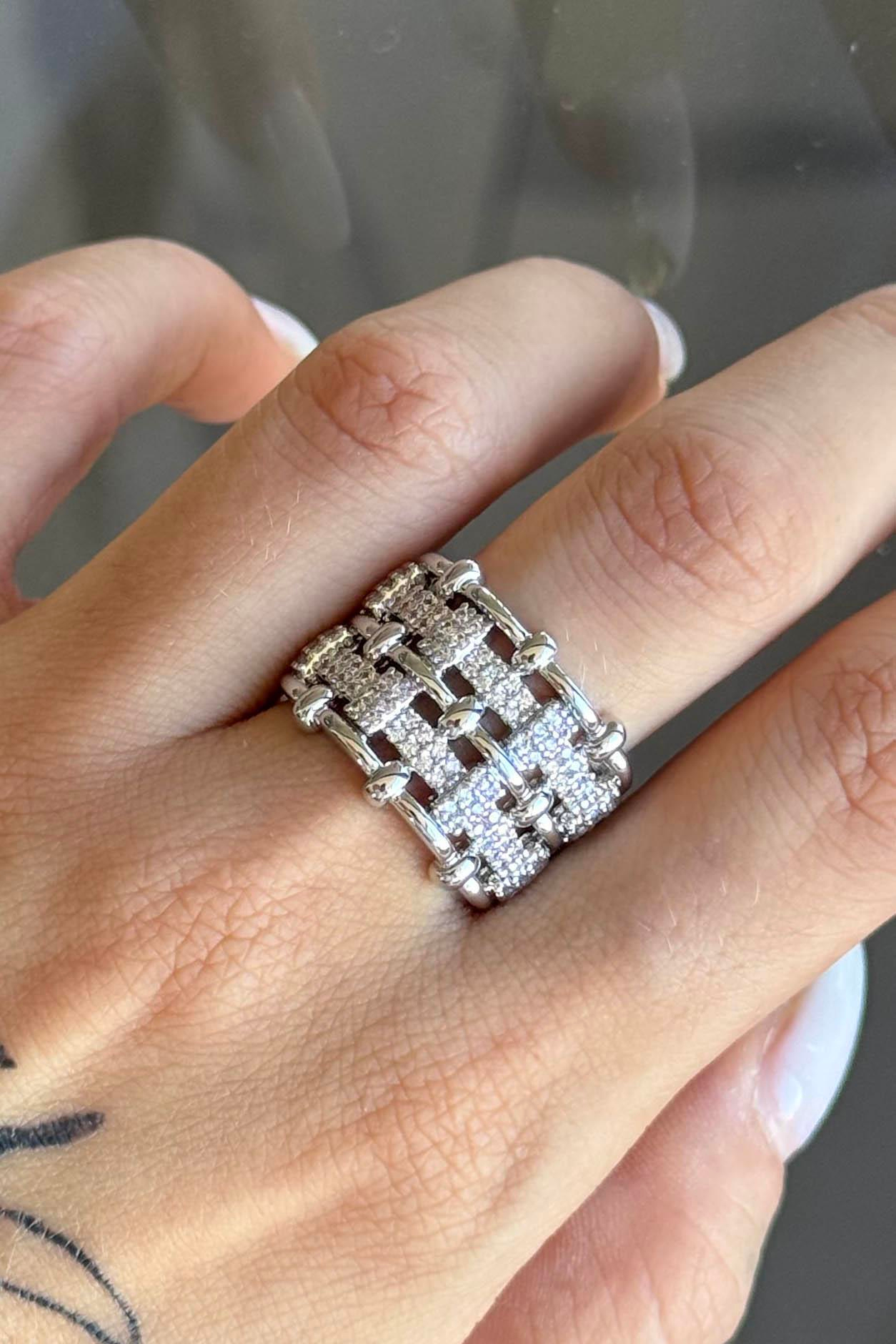 Gümüş Renk Taş Detaylı Ayarlanabilir Çelik Yüzük