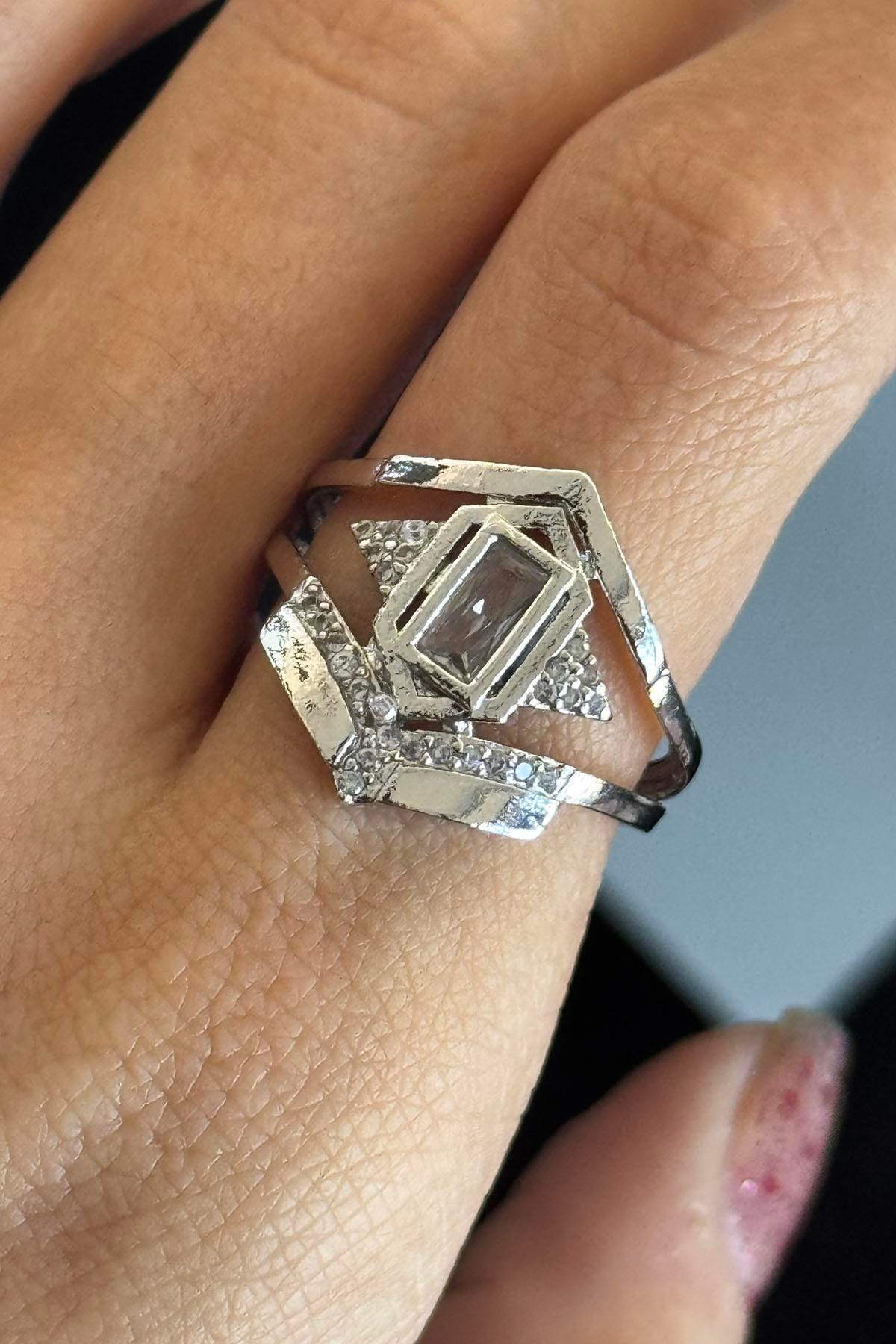 Gümüş Renk Taş Detaylı Ayarlanabilir Yüzük