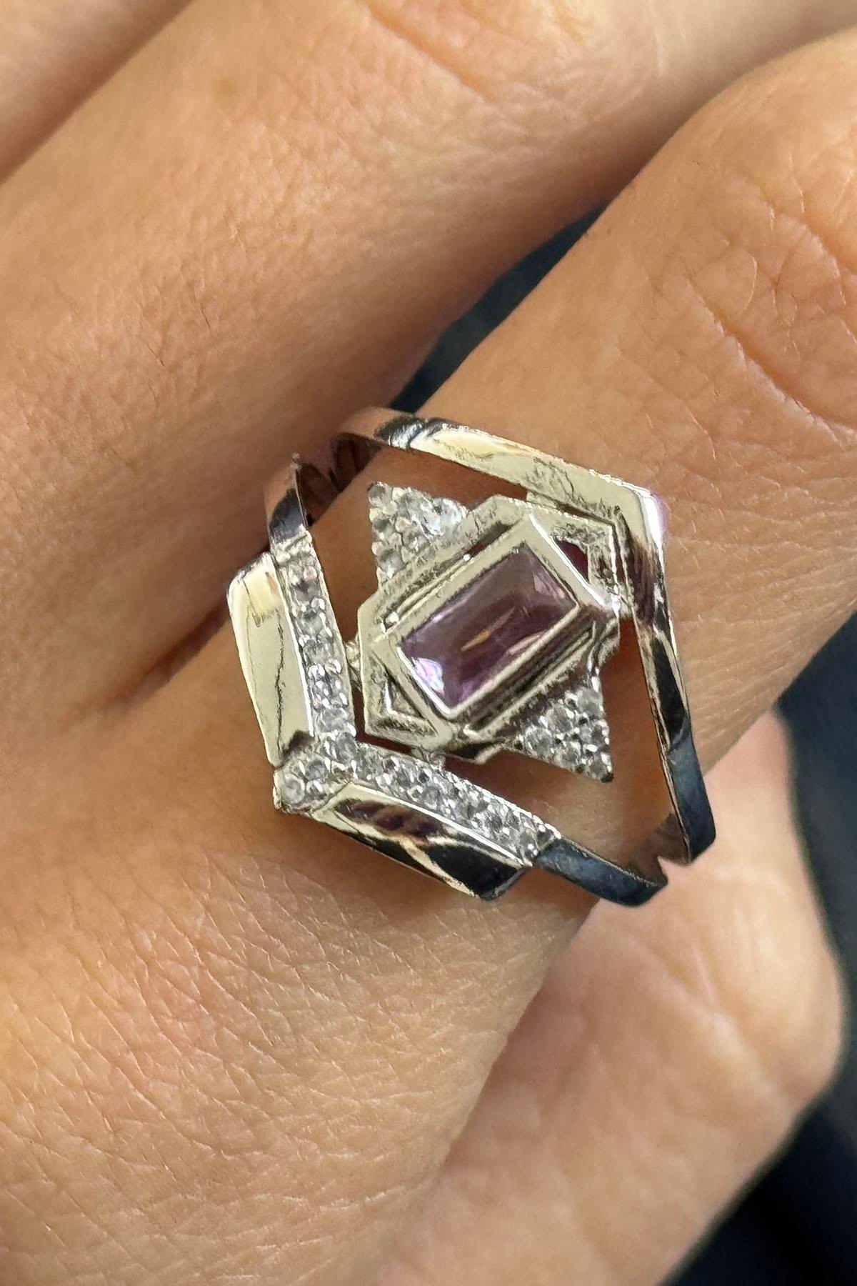 Gümüş Renk Taş Detaylı Ayarlanabilir Yüzük