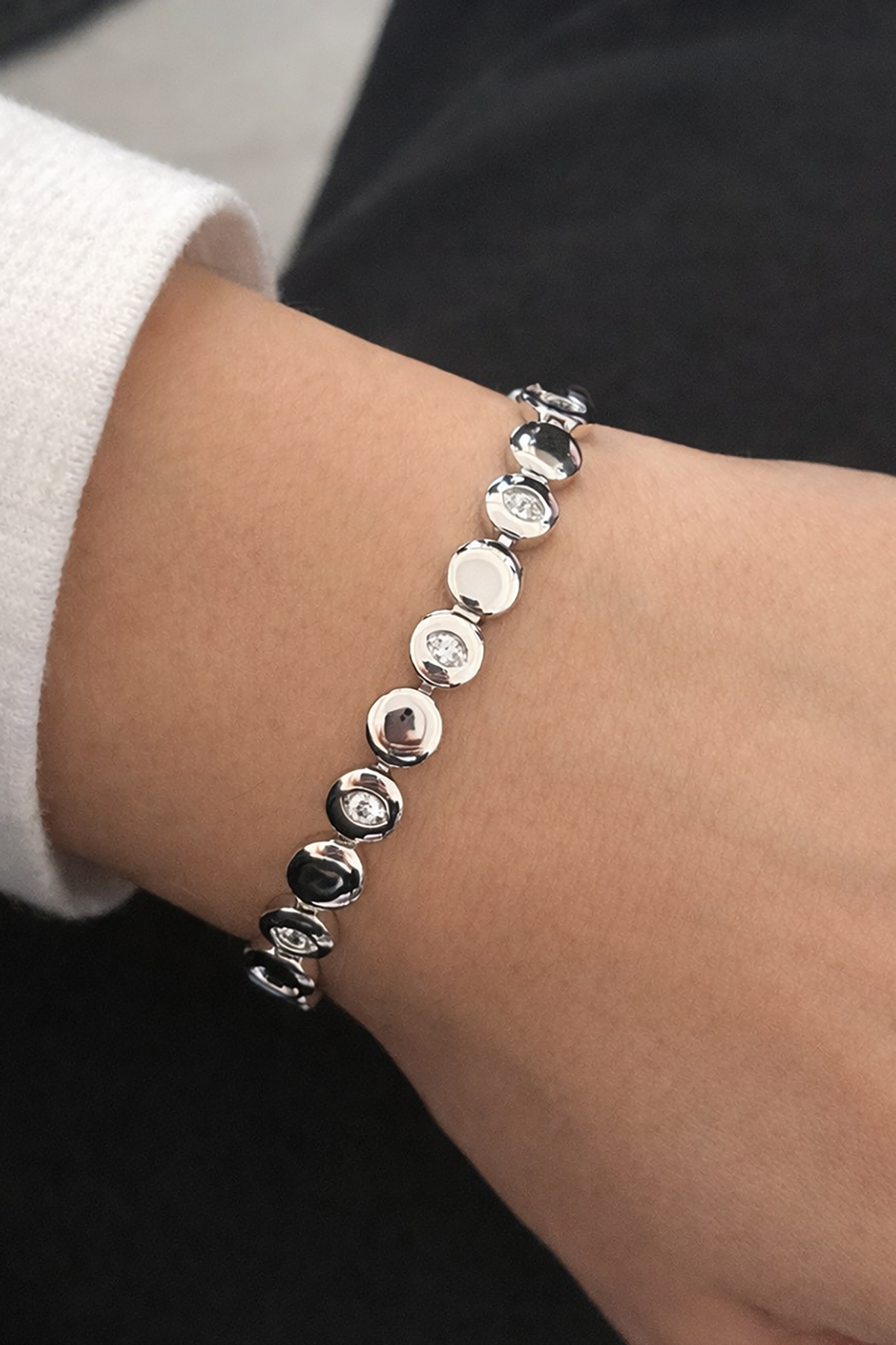 Gümüş Renk Taş Detaylı Çelik Xupıng VİP Bileklik
