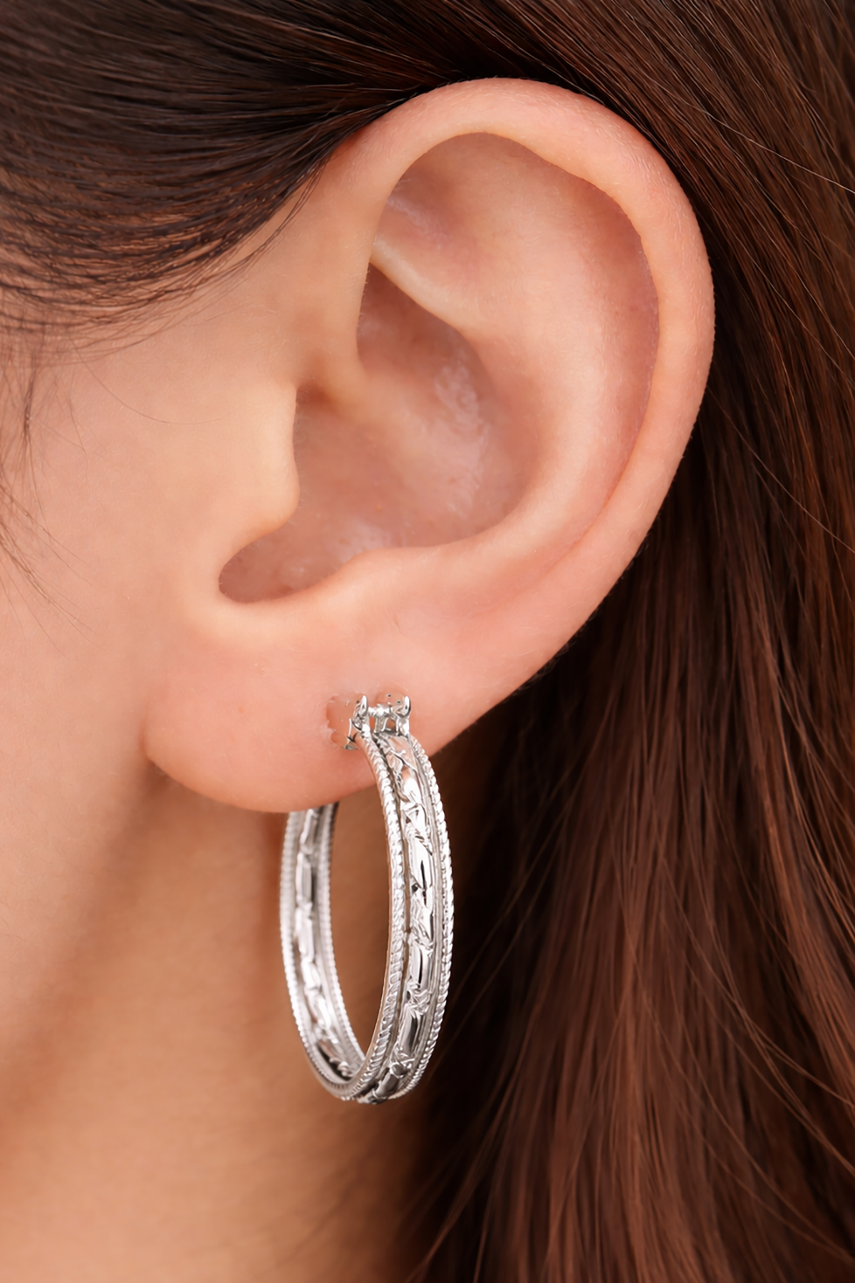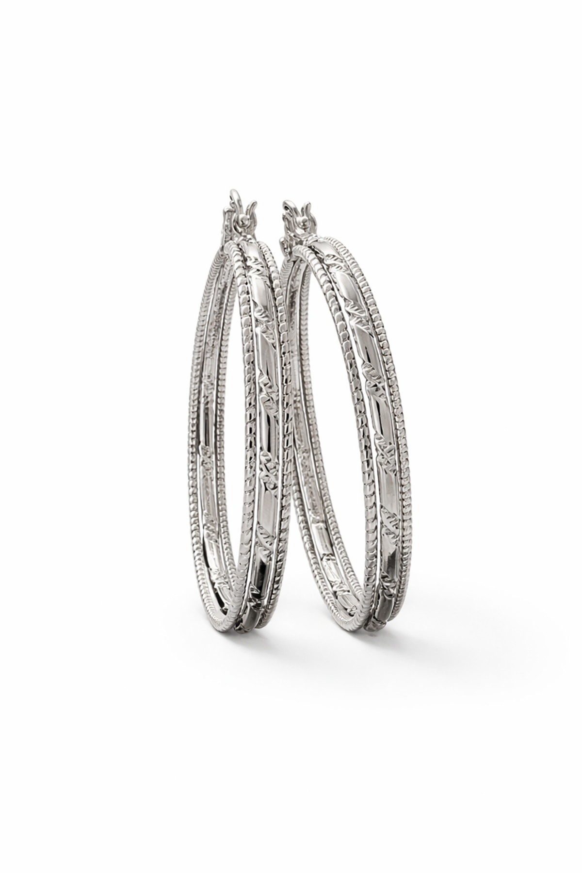 Gümüş Renk Taş Detaylı Çelik Xupıng VİP Halka Küpe