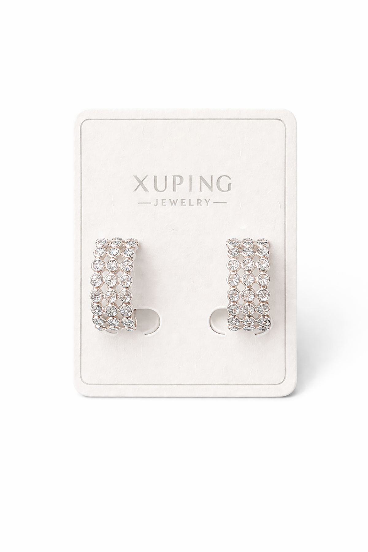 Gümüş Renk Taş Detaylı Çelik Xupıng VİP Küpe