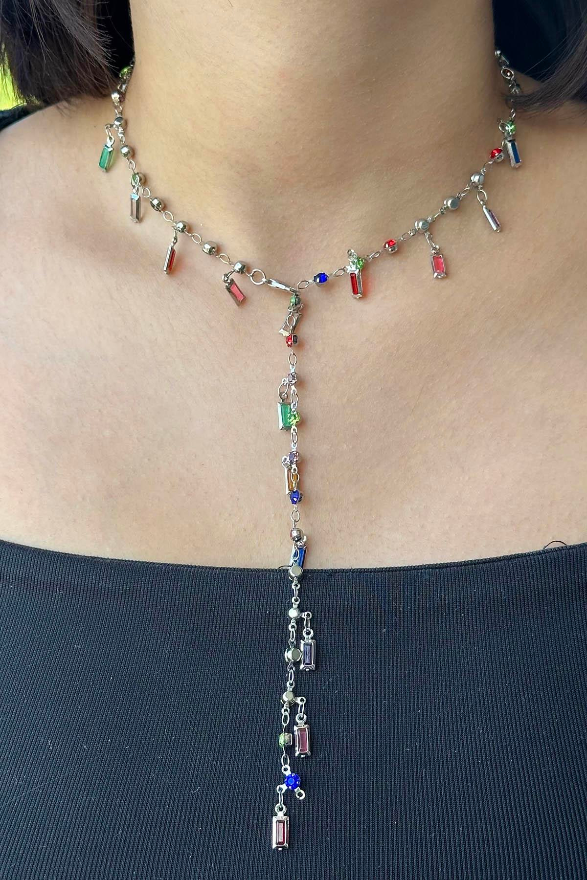 Gümüş Renk Taş Detaylı Çelik Y Kolye