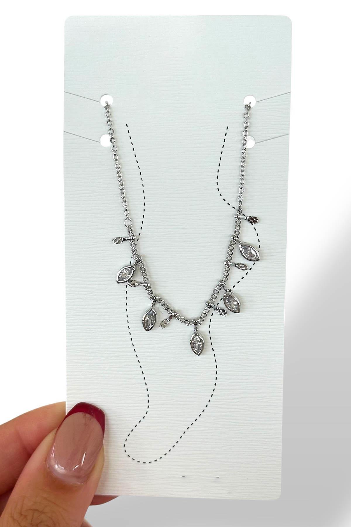 Gümüş Renk Taş Detaylı Halhal