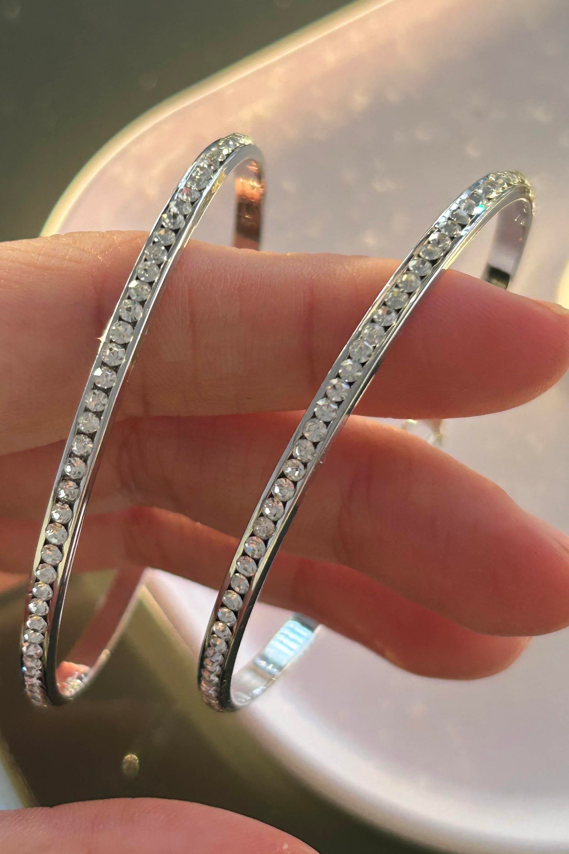 Gümüş Renk Taş Detaylı Halka Küpe (Çift)