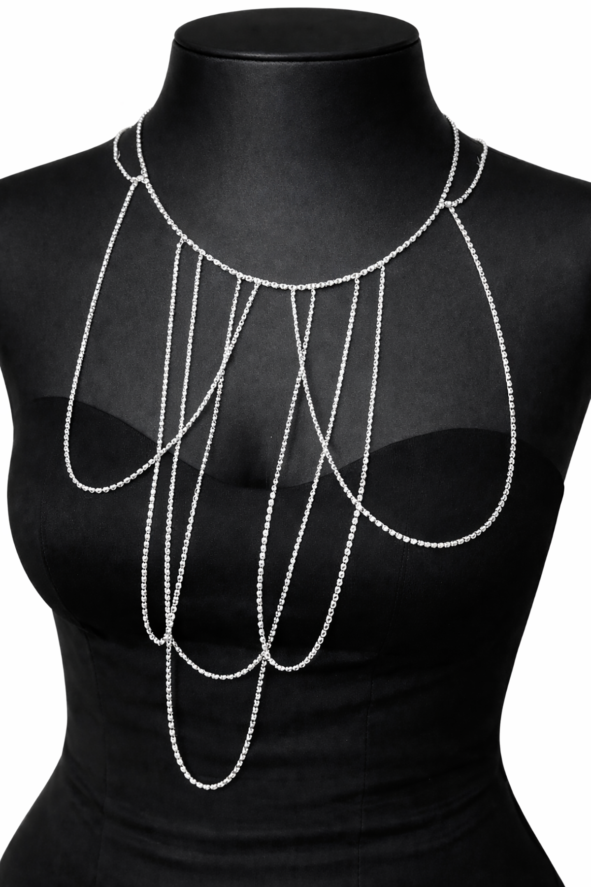 Gümüş Renk Taş Detaylı Tasarım Abiye Kolye