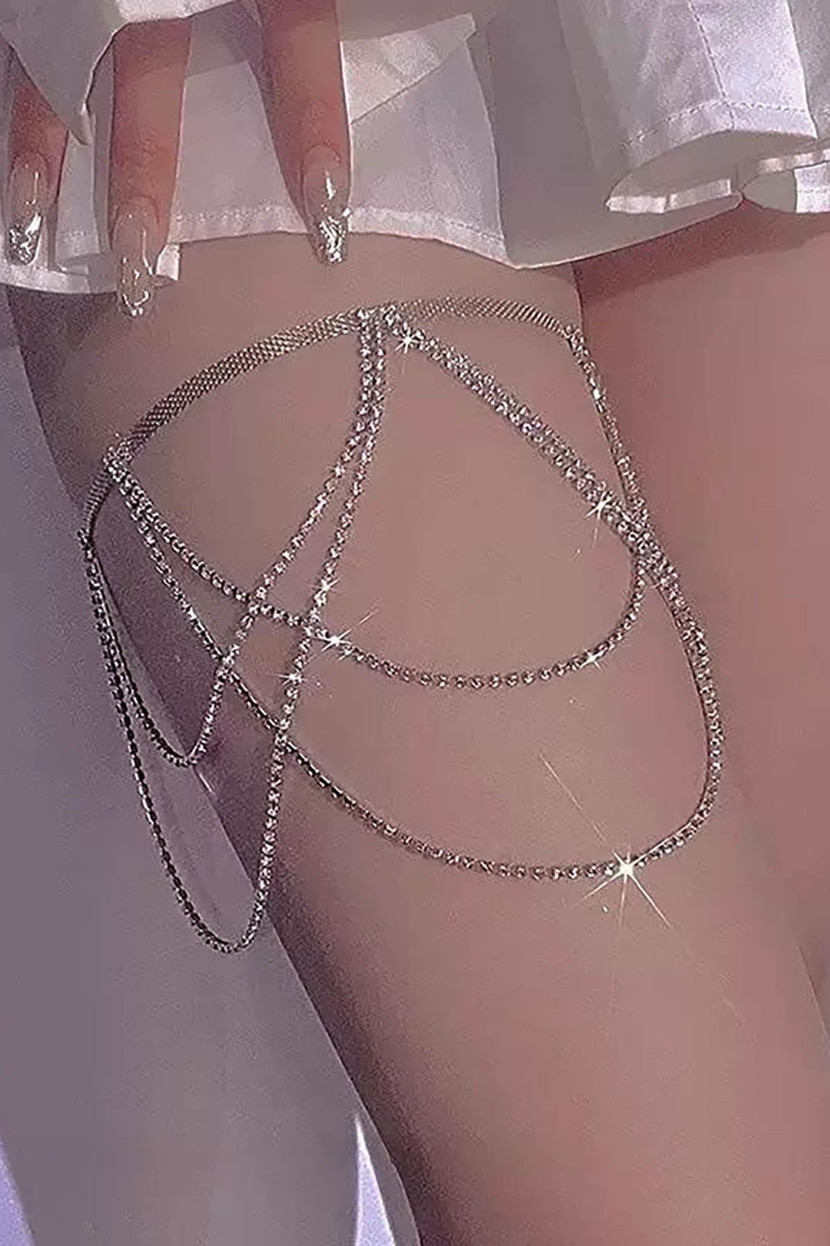 Gümüş Renk Taş Detaylı Tasarım Bacak Aksesuarı