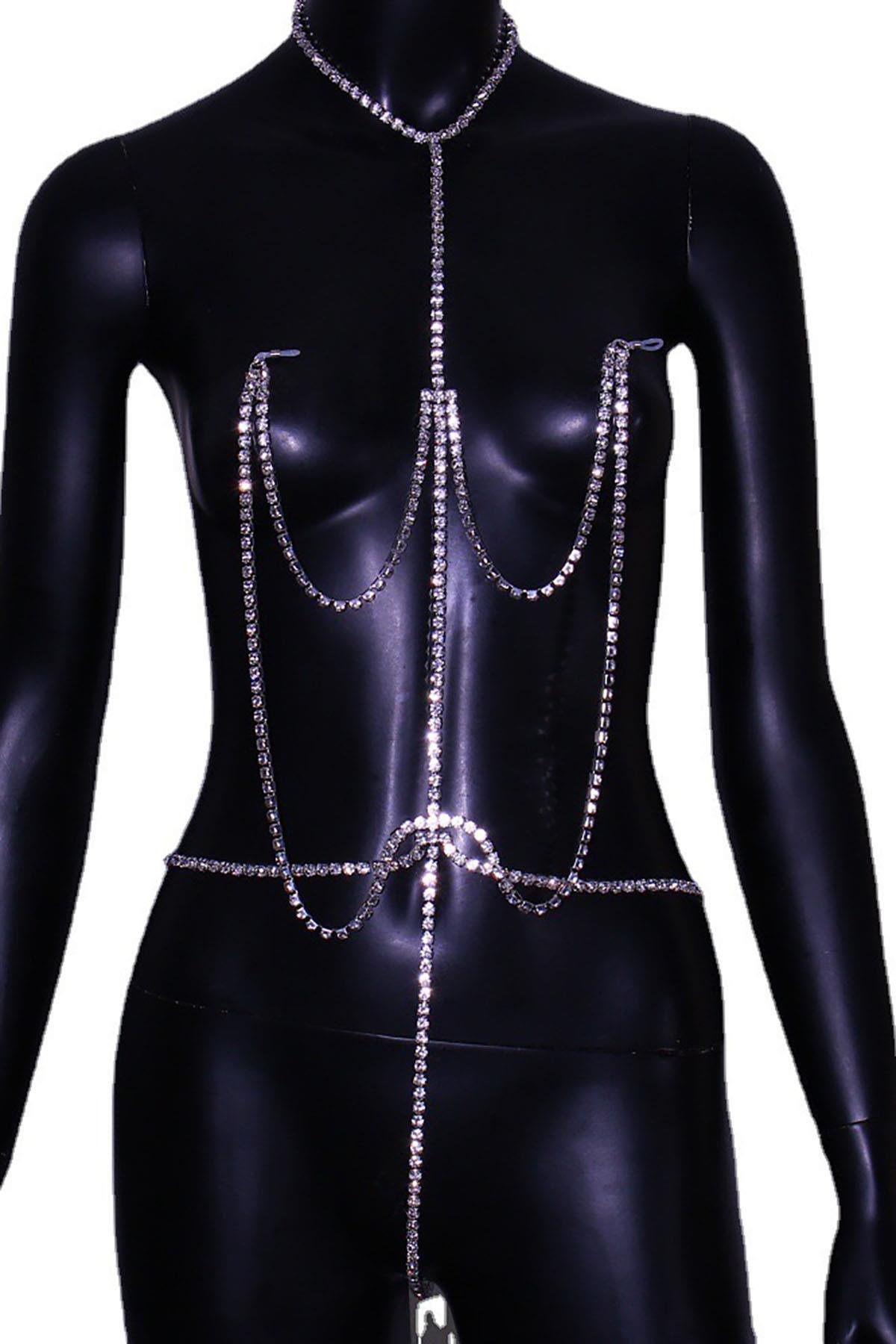 Gümüş Renk Taş Detaylı Tasarım Vücut Aksesuar